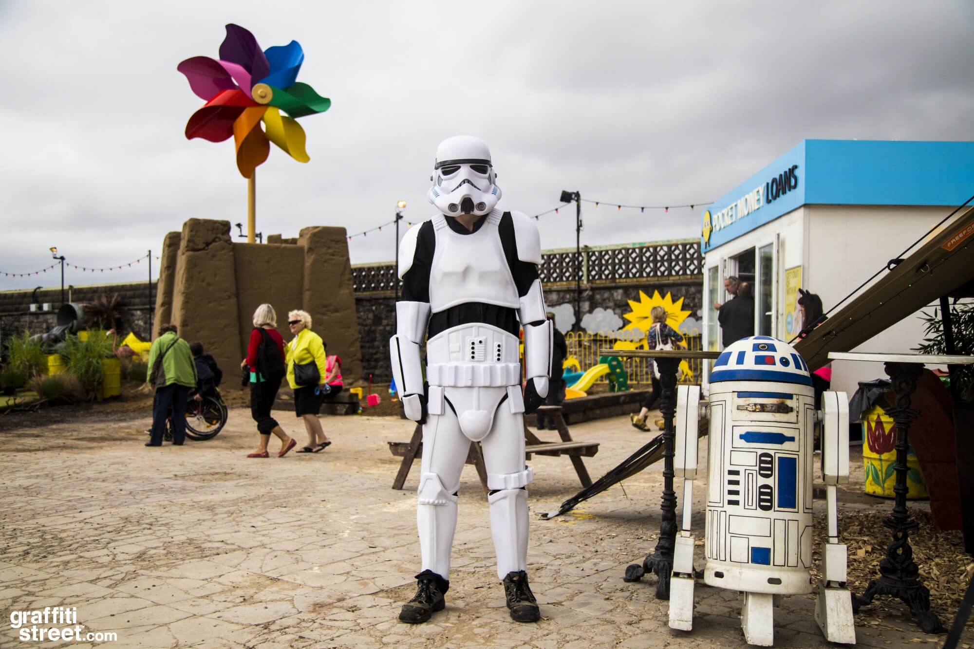 As we venture into the depths of this neglected seaside resort, we are granted a rare glimpse into the hidden wonders that lay within its walls. This is not just any ordinary street art on show…it’s a stunning representation of Banksy’s imaginative graffiti ideas that have been brought to life plus special guests. The intricate details of the artwork capture the essence of Banksy’s unique style, allowing us to marvel at the true beauty of his creative genius.
