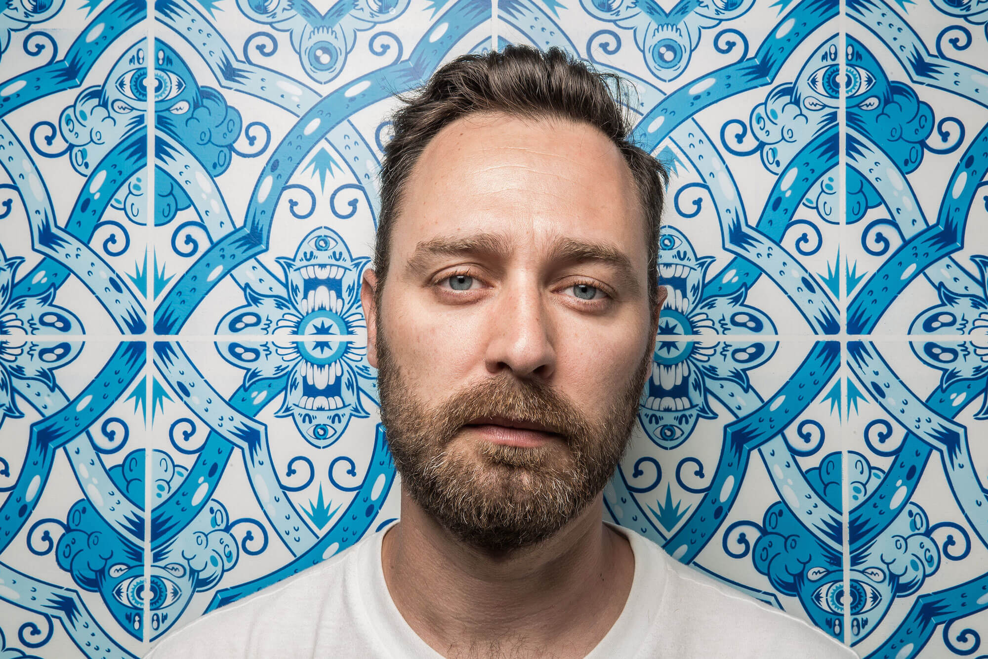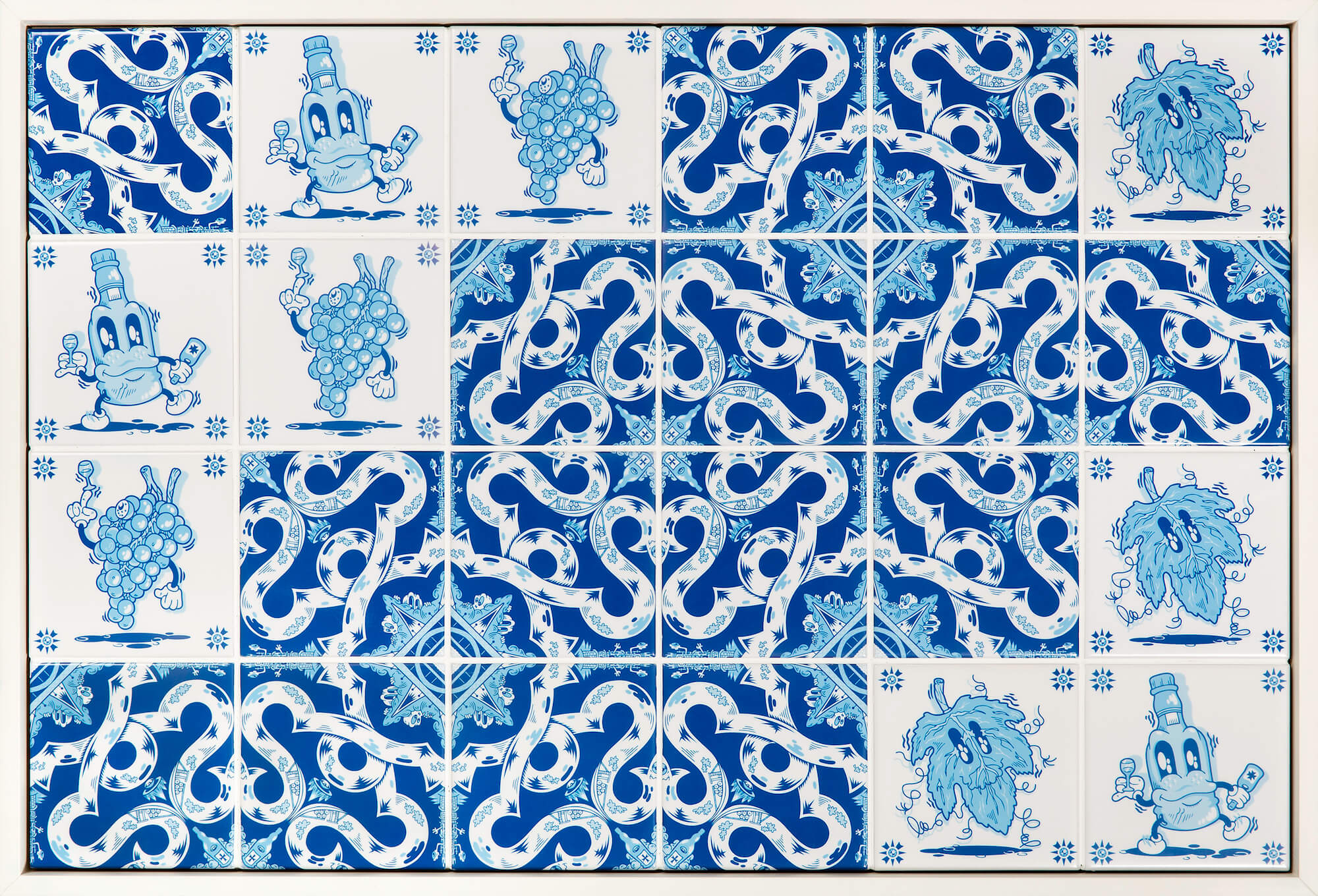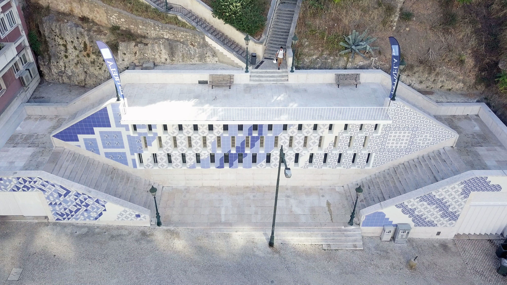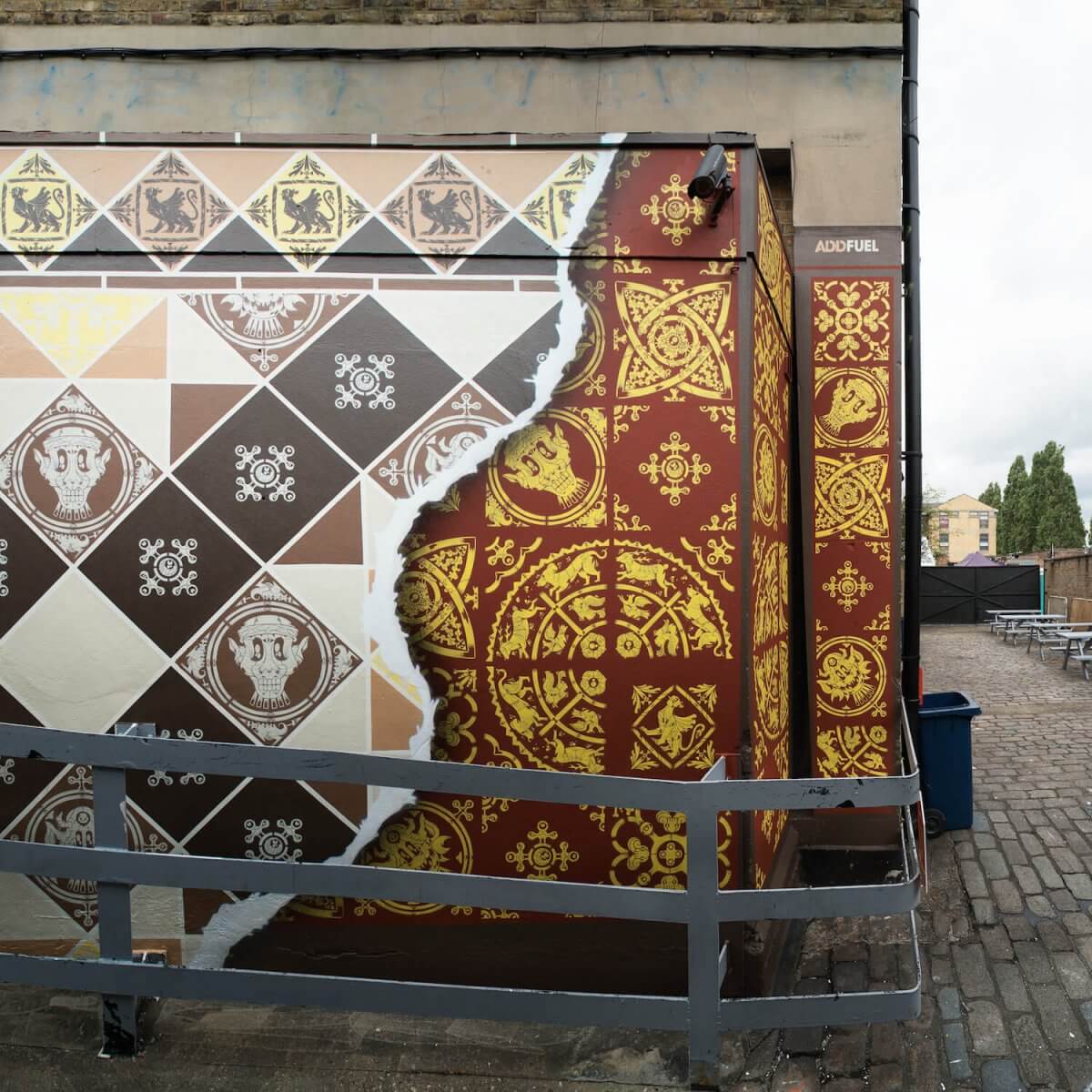 Add Fuel is Portuguese visual artist and illustrator Diogo Machado (b. 1980). A former graphic designer, his recent artistic practice has been focused on reinterpreting and playing with the language of traditional tile design, and that of the Portuguese tin-glazed ceramic azulejo in particular. Blending traditional and contemporary elements, his original vector-based designs and stencil-based street art reveal an impressive complexity and a masterful attention to detail.