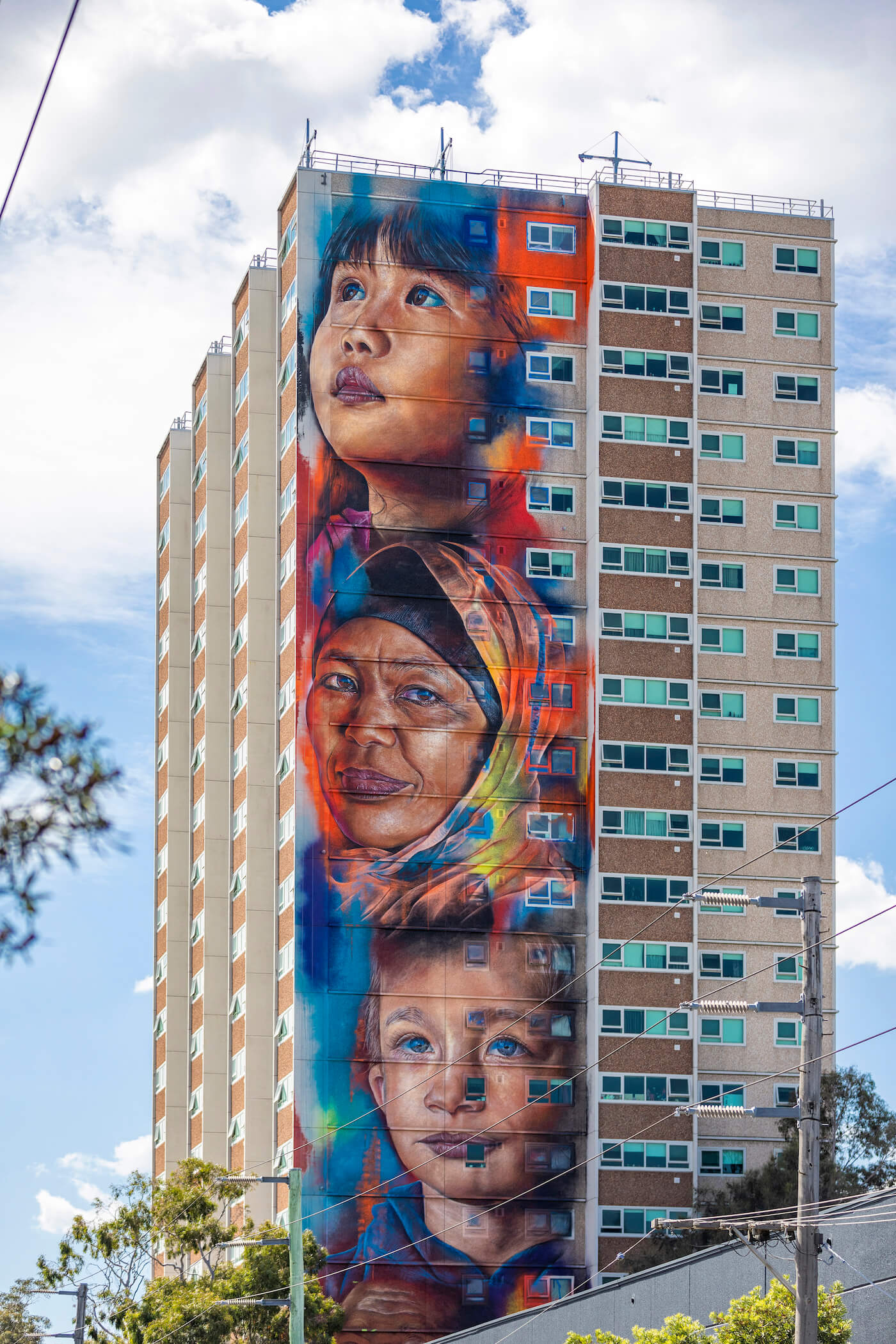 Adnate Paints the Tallest Mural in the Southern Hemisphere to Celebrate Public Housing and Multiculturalism, Melbourne 2018