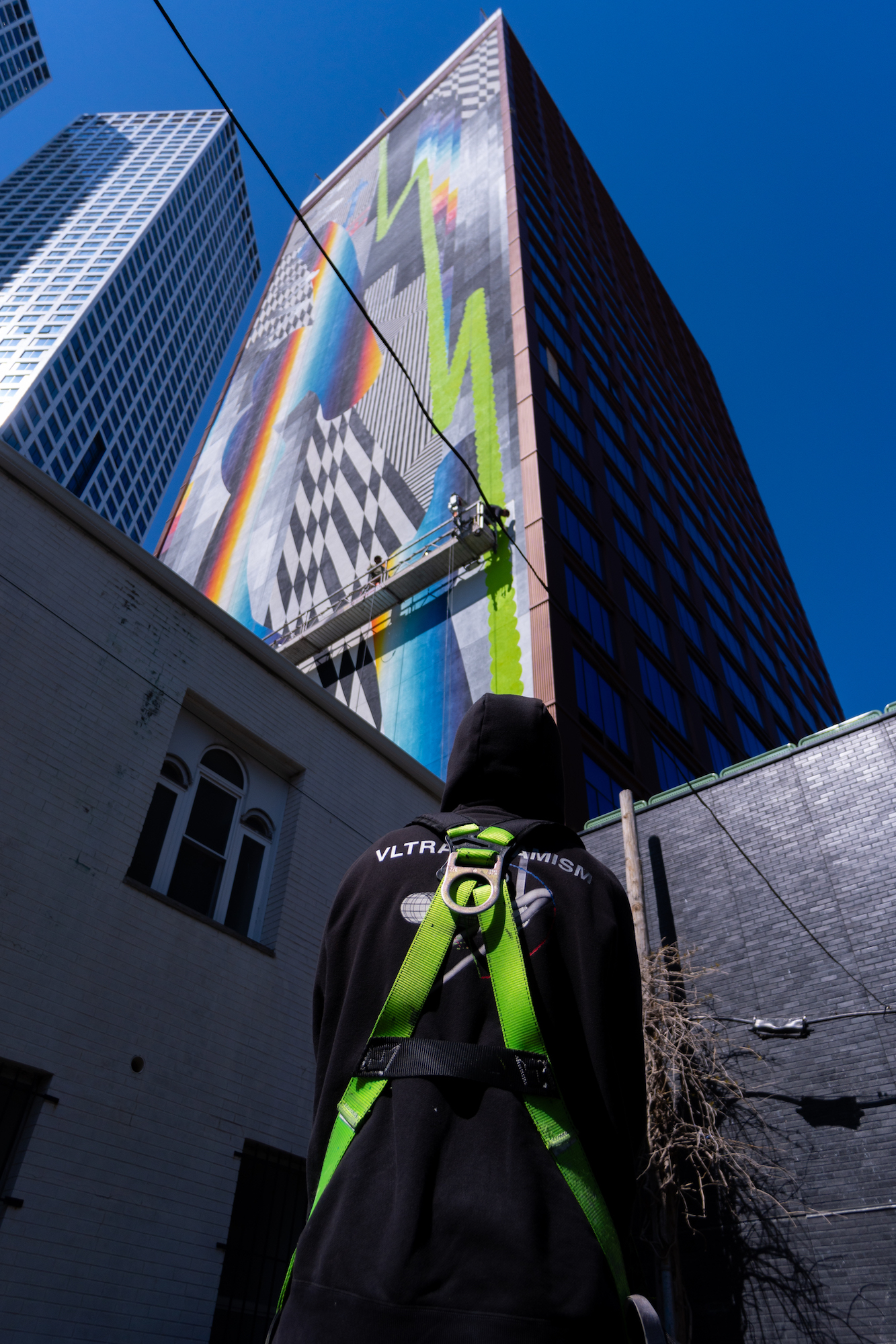 In this interview, we will delve into the creative process and challenges that Felipe and his team faced while creating this monumental public artwork. From experiencing hard rain to navigating two earthquakes while up extremely high on the lift, Felipe shares his experiences and insights into what it takes to bring a project of this scale and ambition to life.