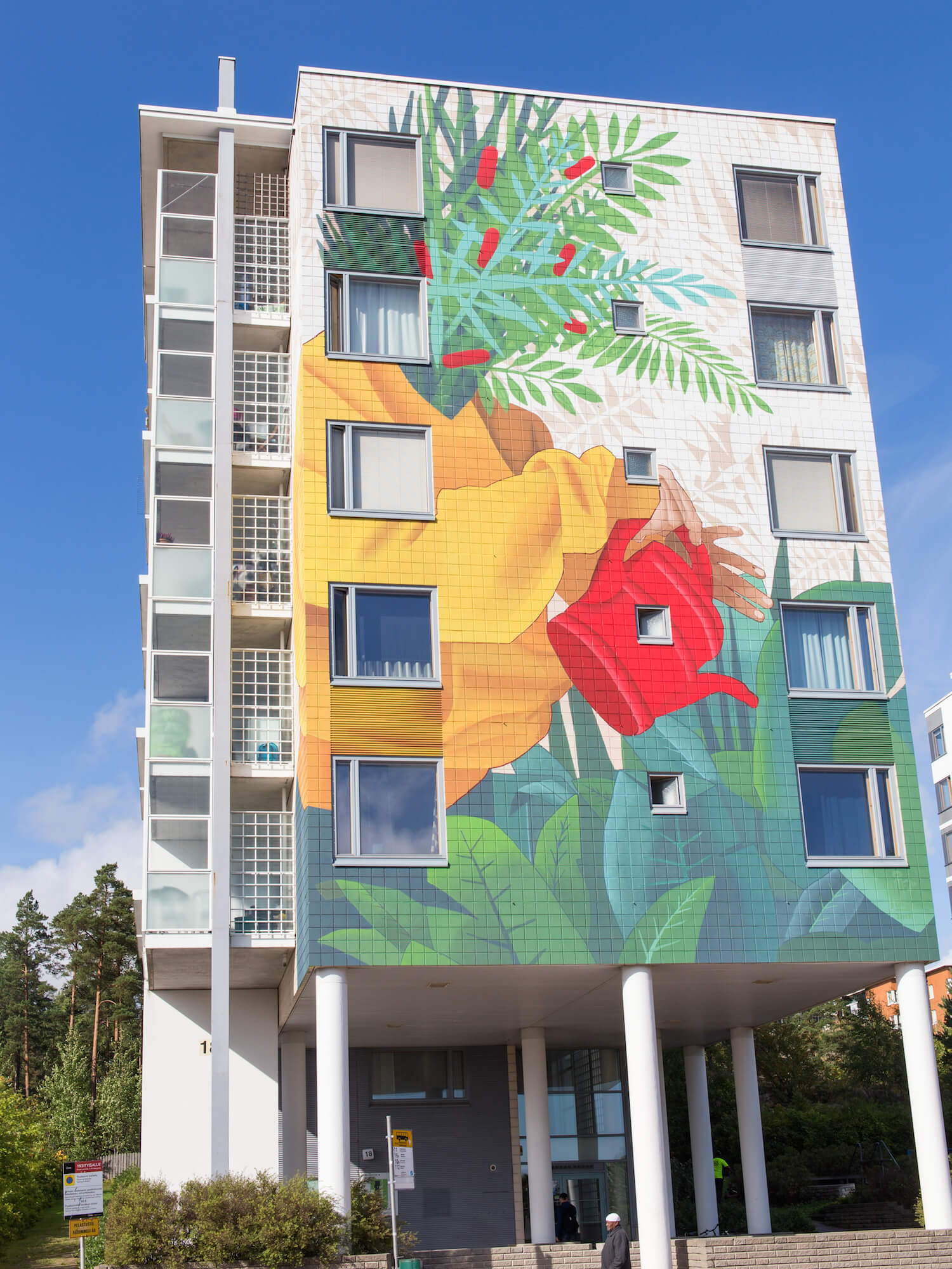 His lush nature inspired mural can be found at Nelikkotie 18, in the city of Espoo.