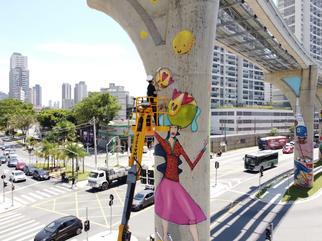 The series expands key themes central to Enivo’s practice: humanity, ancestry, peripheral identity, spirituality, and the lived experiences that shape Brazil’s urban communities. Through pulsating colours, fluid lines, and evocative forms, each pillar becomes a towering narrative, echoing the cultural forces and collective memory that animate the city.