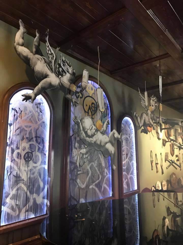“Probably another misguided venture into corporate hospitality – the Walled Off hotel” Banksy