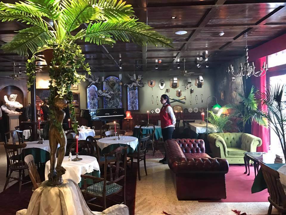 In 1917, Palestine fell under British rule, and now, a piano bar has been designed in the theme of a colonial outpost from that era. Visitors can marvel at the collection of thought-provoking Banksy artworks featuring cupids descending from the sky with oxygen masks, oil paintings with a profound meaning, statues engulfed in tear gas, burning debris, heightened security, and even a depiction of Jesus with a target on his head. Read more about the artworks by Banksy inside The Walled off Hotel here.
