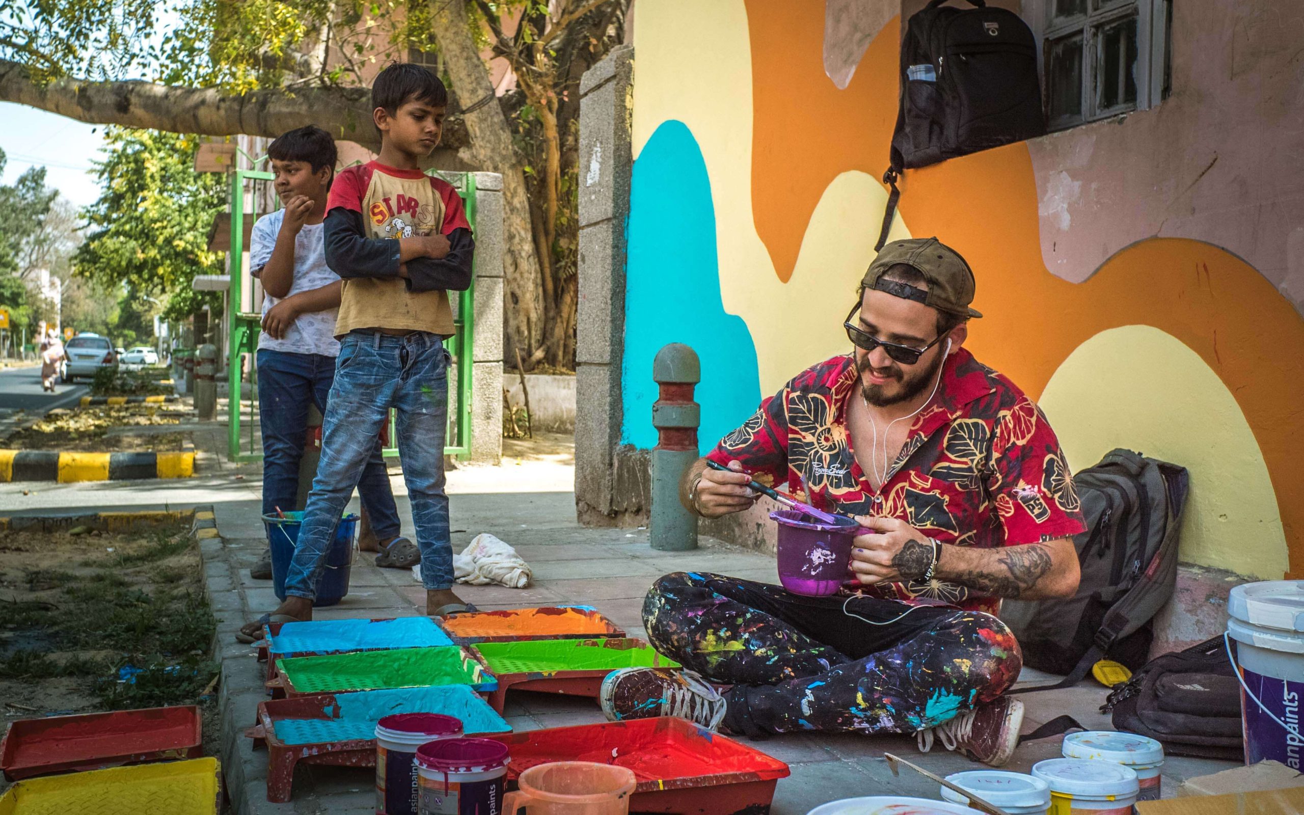 Bicicleta Sem Freio duo paint independently in Lodhi Colony, India 2017