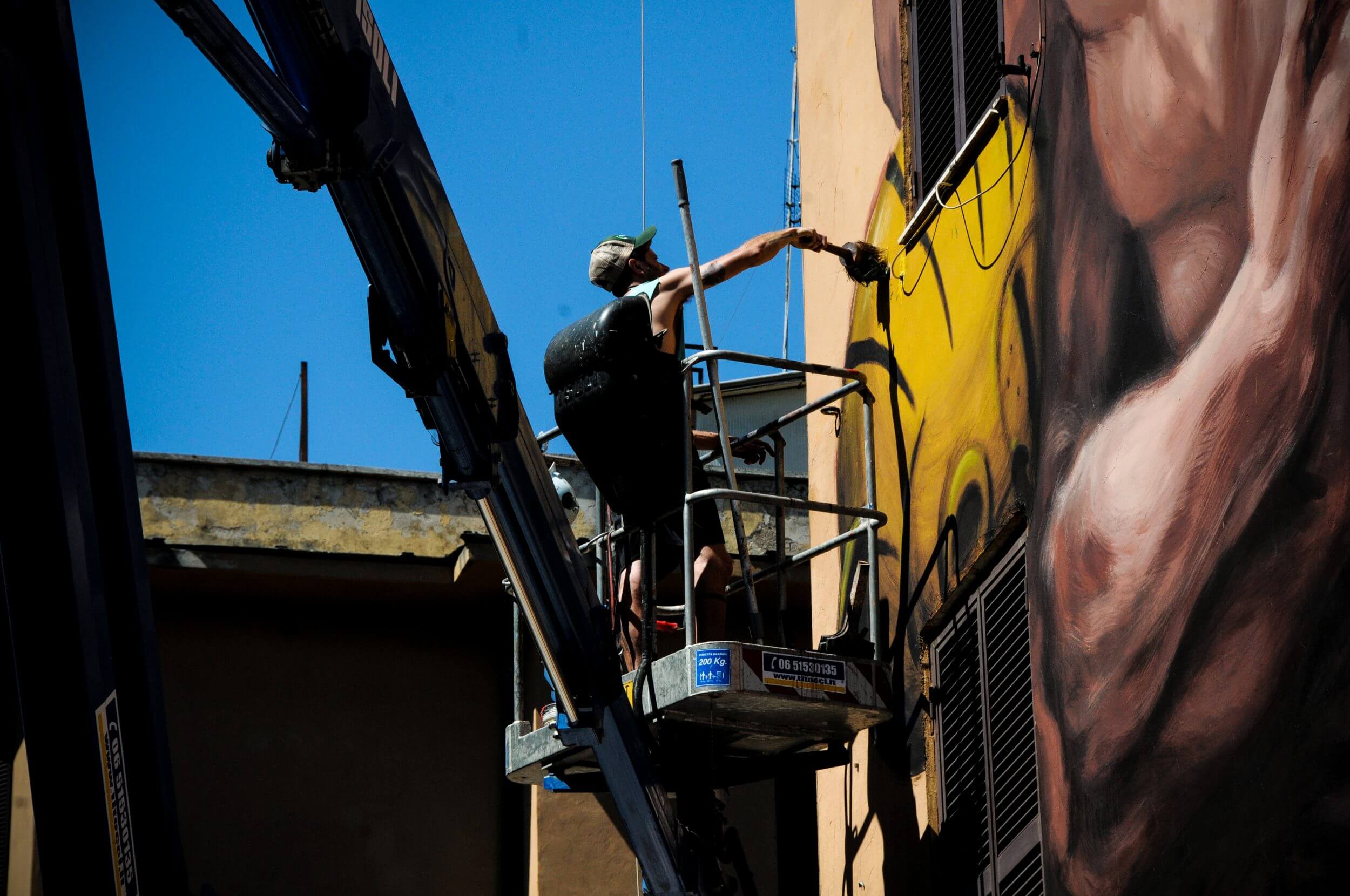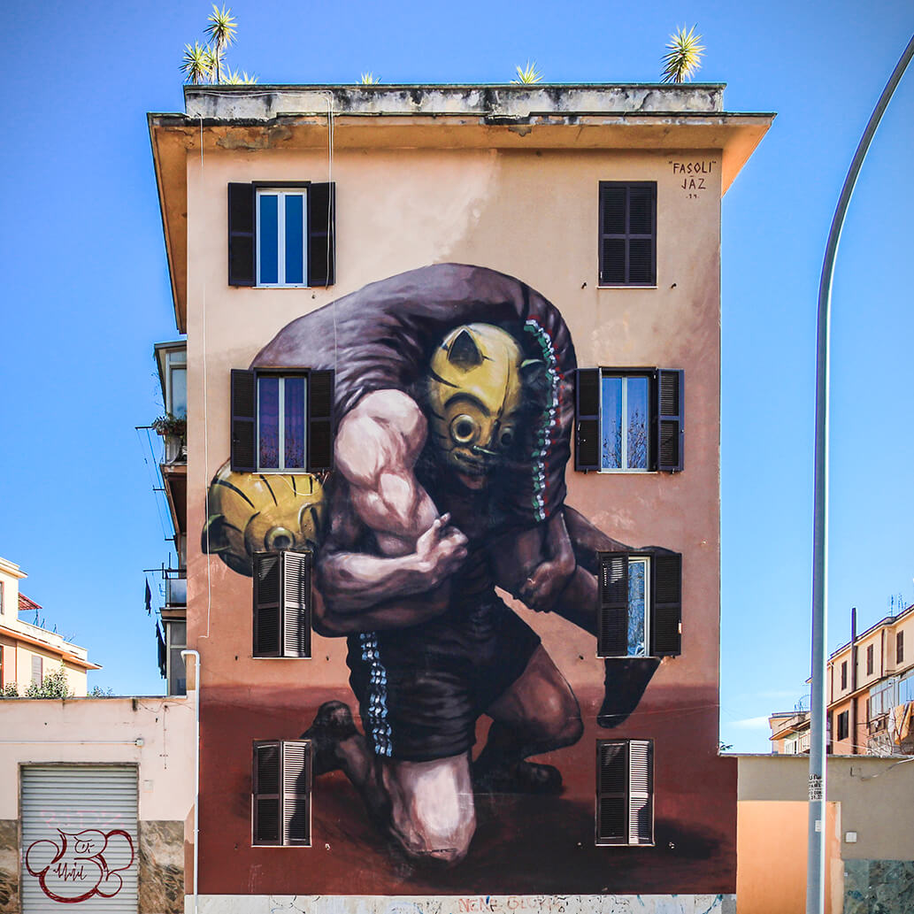 Argentian Jaz painted two wrestlers representing the weight of the history ‘Il Peso della Storia’ for the town of Tor Marancia.