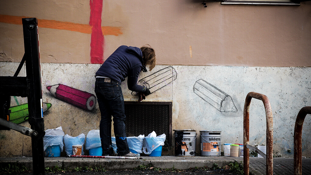 Artists invited include Seth, Jaz, Gaia, Philippe Baudelocque, Mr Klevra, Alberonero, Danilo Bucchi, Domenico Romeo, Satone, Lek & Sowat, Moneyless, Clemens Behr, Reka, Jerico, Matteo Basilé, Diamond and Pantonio.