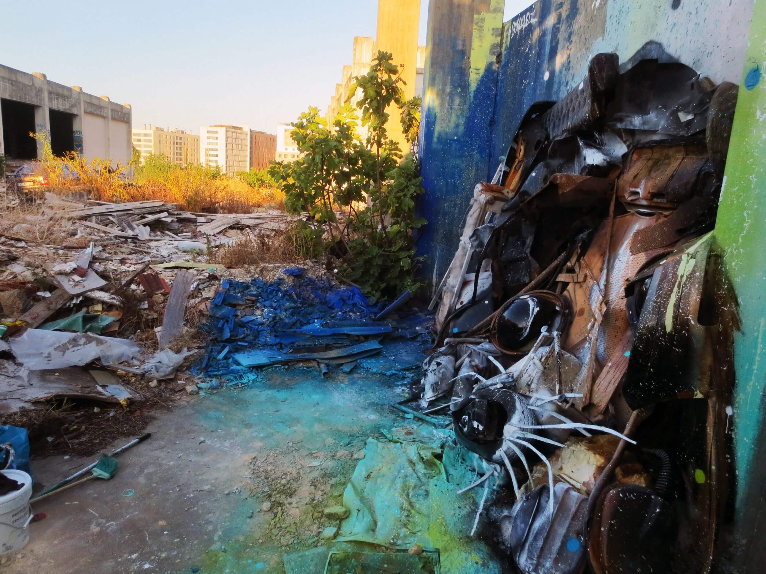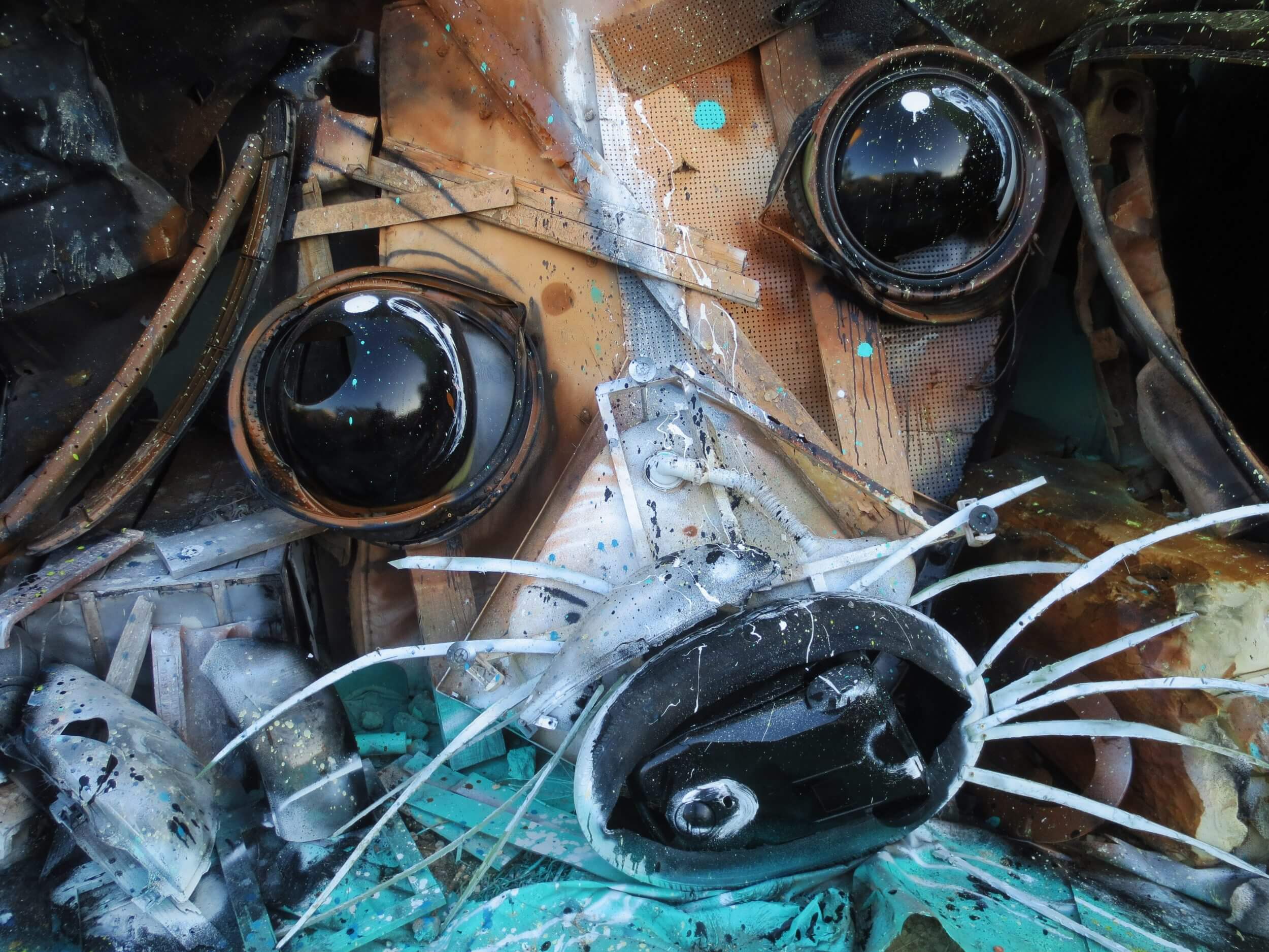 and his more recent Big Trash Kitten, both made from waste found in an abandoned place in Lisbon.
