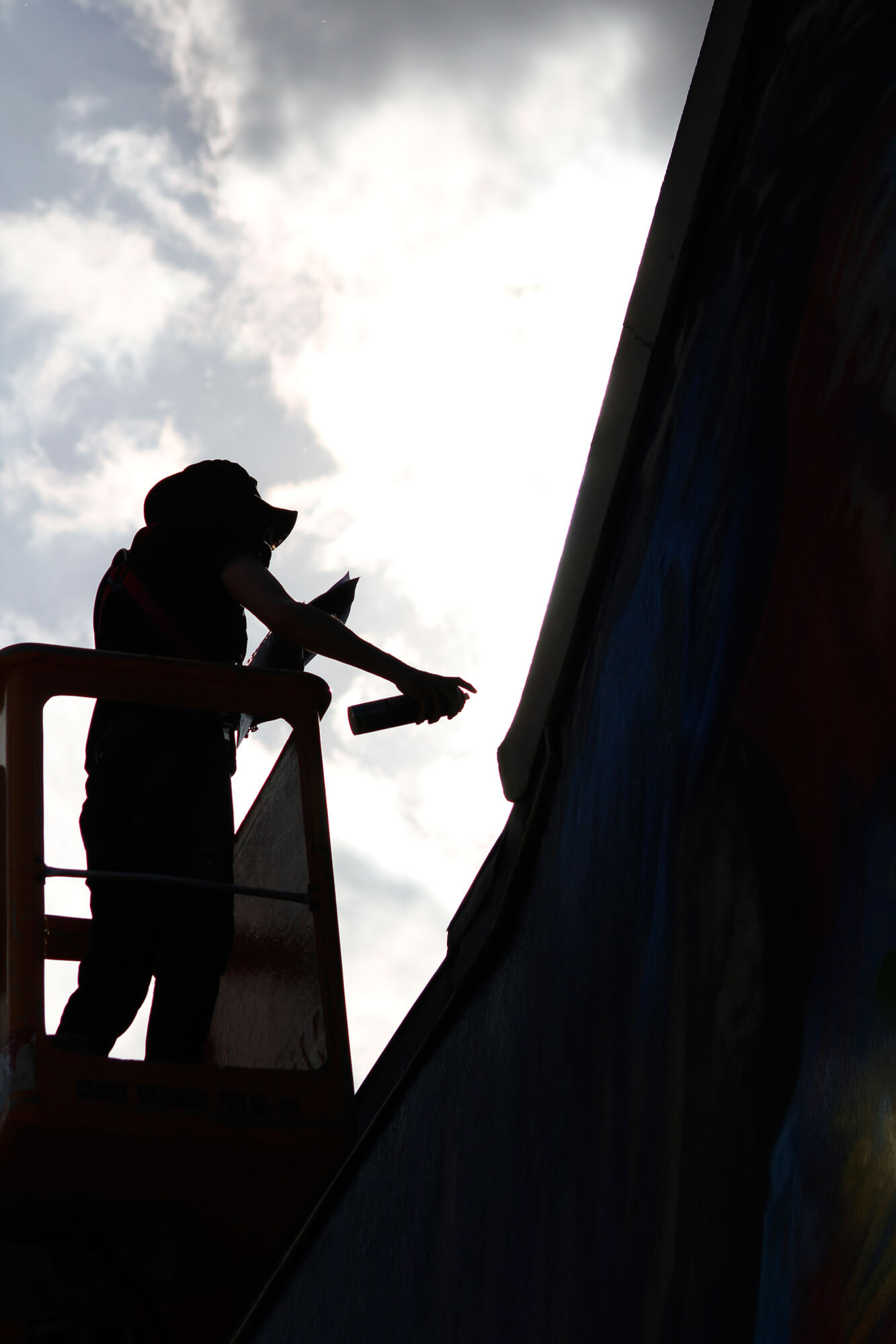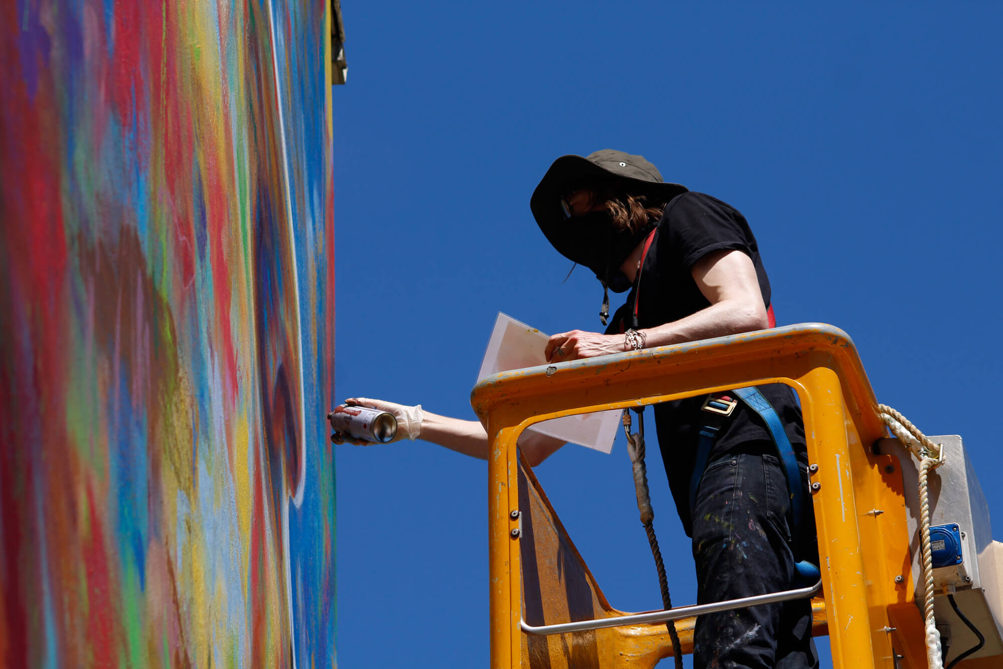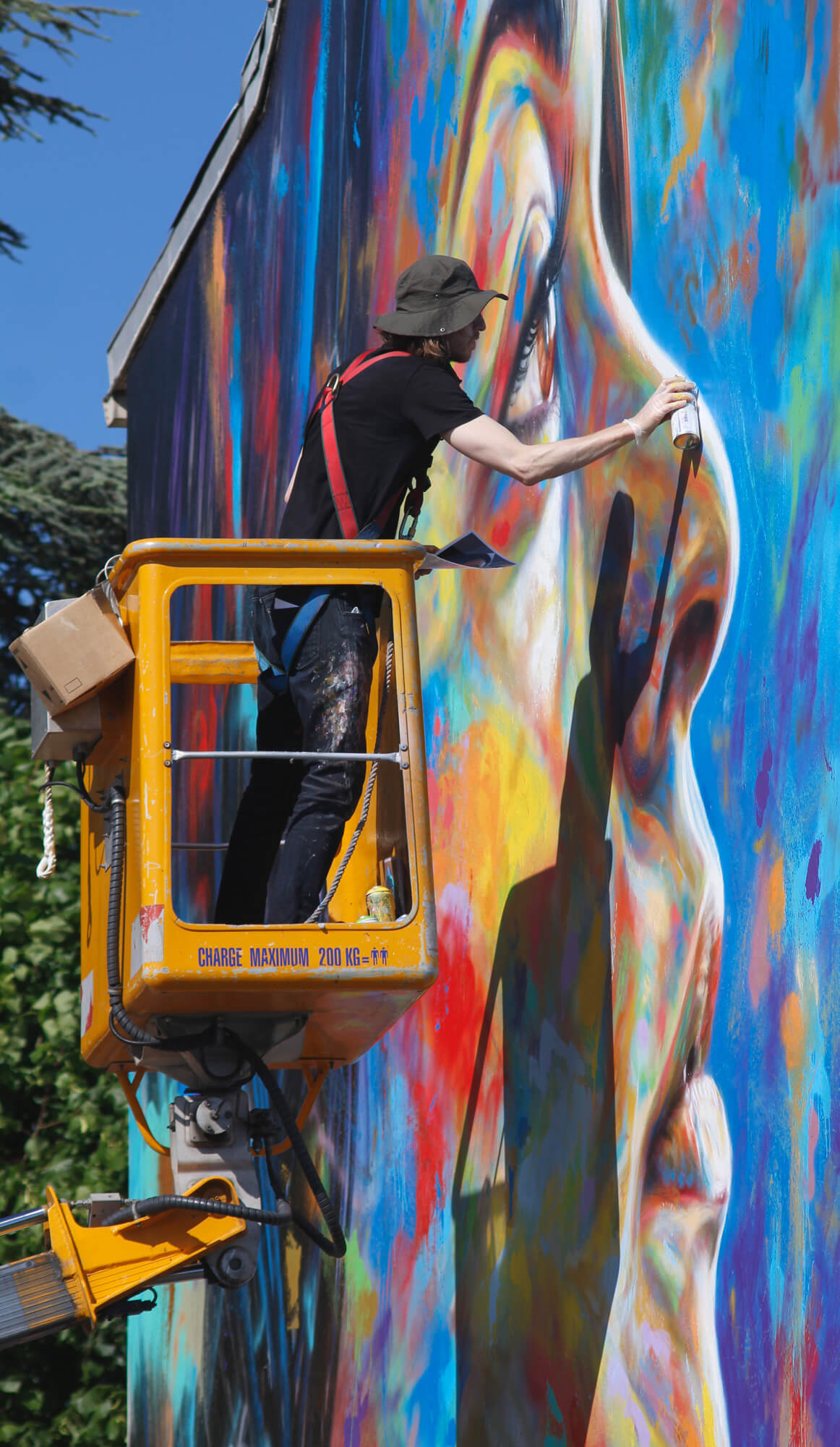 David Walker’s mural is the portrait of a young woman named Yuli. One recognizes the artist’s particular graffiti style, colourful layers forming a portrait that sometimes borders with hyperrealism.