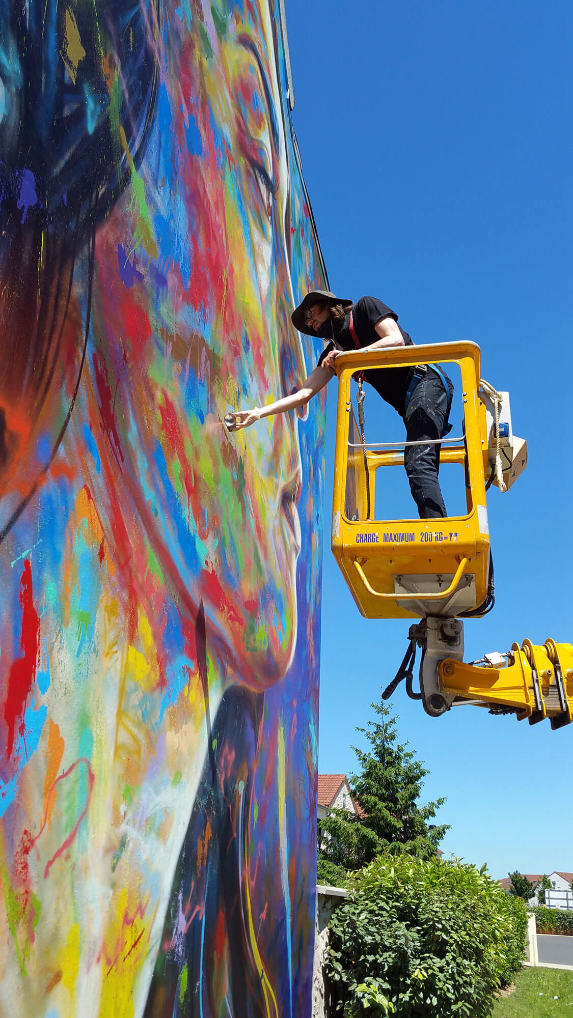 The festival came about after the 2015 street art fest that saw fifty artists (Speedy Graphito, Clet, Cranio, Monkeybirds etc) take over the southern suburbs of Paris, Evry center Essonne. Now the agglomeration community is called Grand Paris Sud and has grown from six to twenty four municipalities.