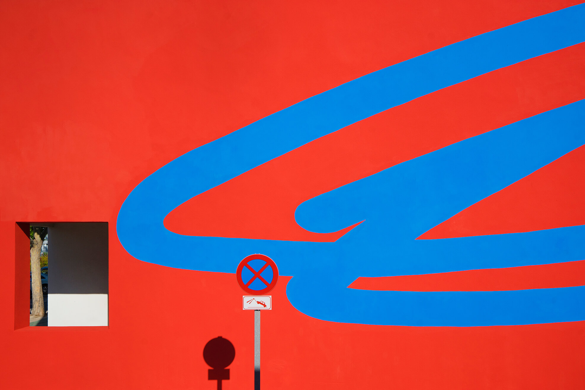 Elian is known for his abstract style and graphic design using vibrant colours and a rich mix of shapes, patterns and varied inclinations. This is seen in Elian’s latest mural entitled “Els rojos i els blaus/ The reds and the blue ones” can be found at the Polytechnic University in Valencia and stands at an impressive 45 x 12 metres.