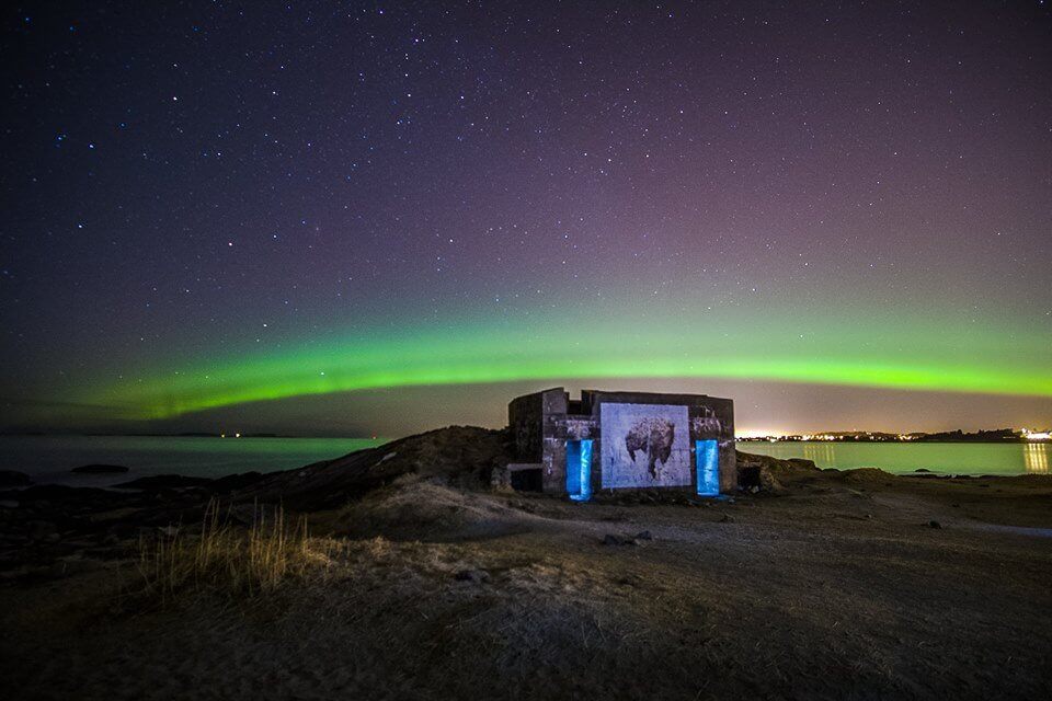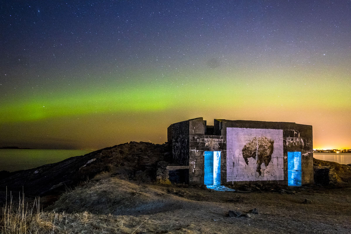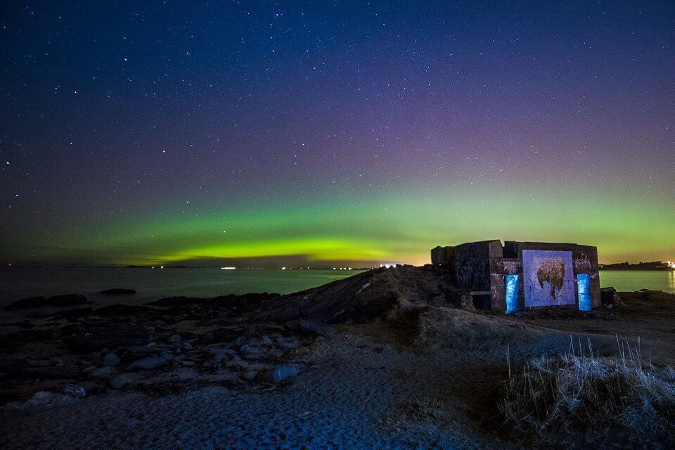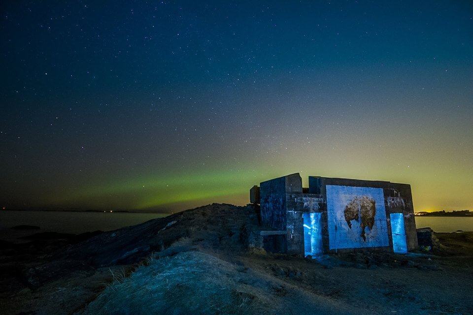 Local photographer and ‘aurora chaser’ Brian Tallman has captured the artwork by Ella & Pitr in stunning detail during a recent display of the Aurora Borealis phenomenon, the Northern lights in Norway.