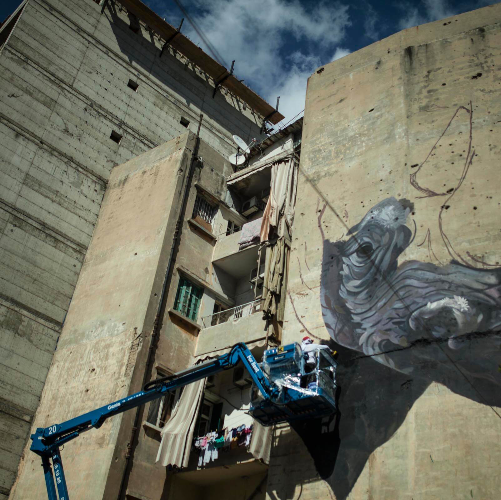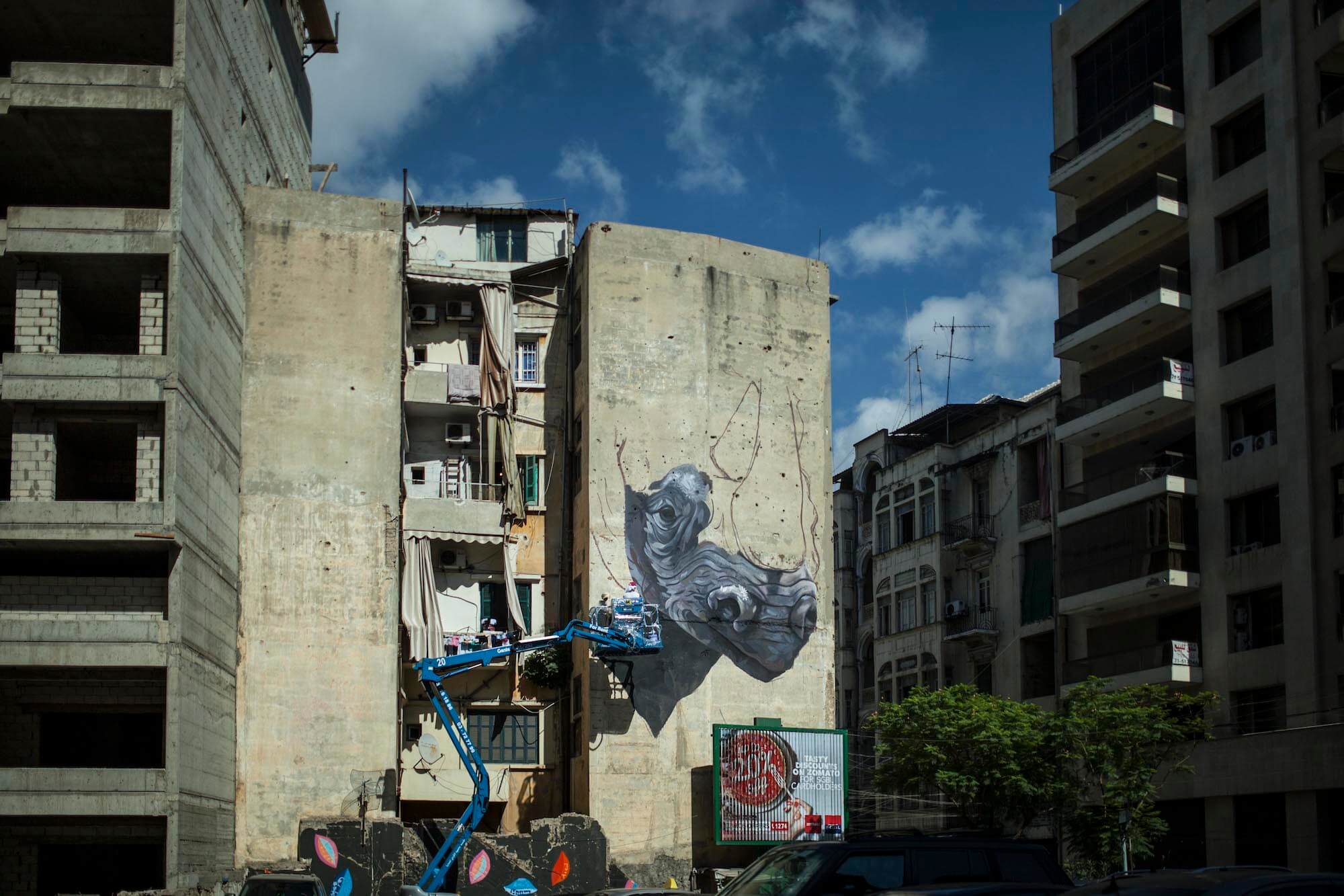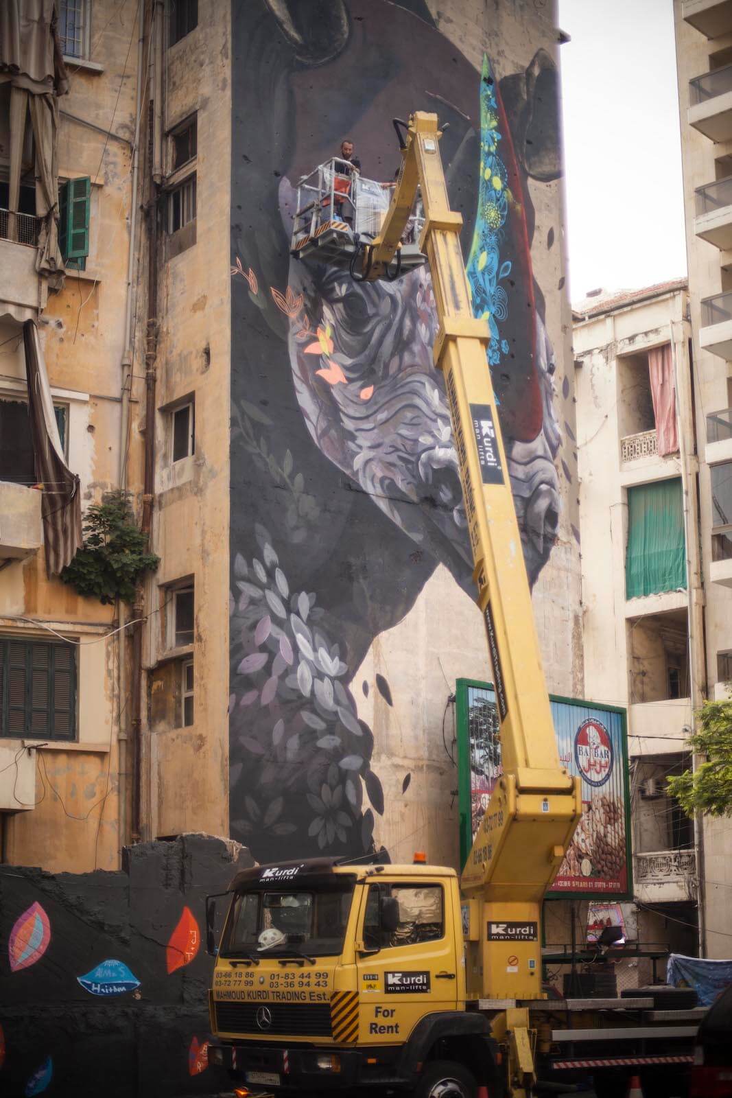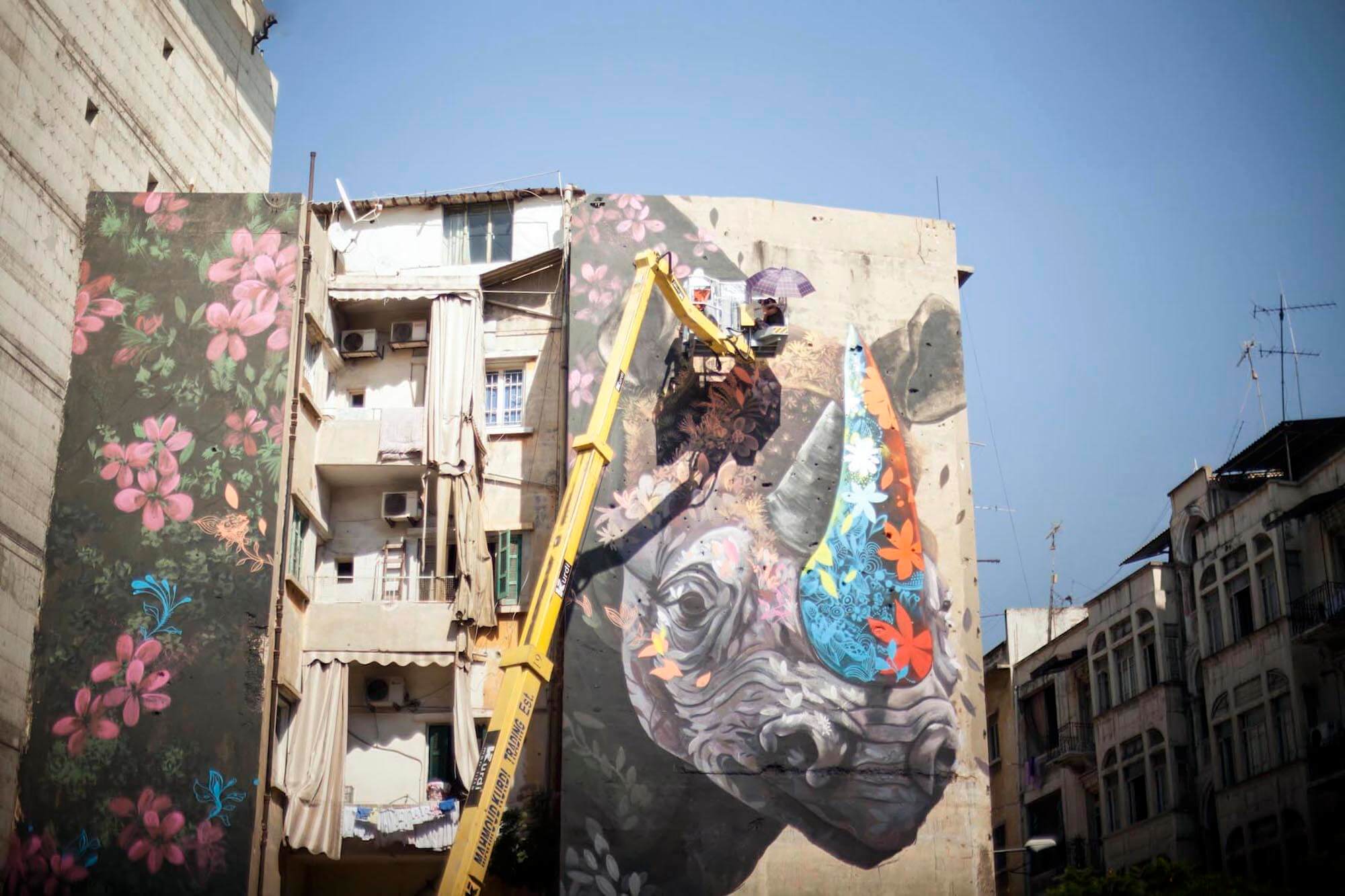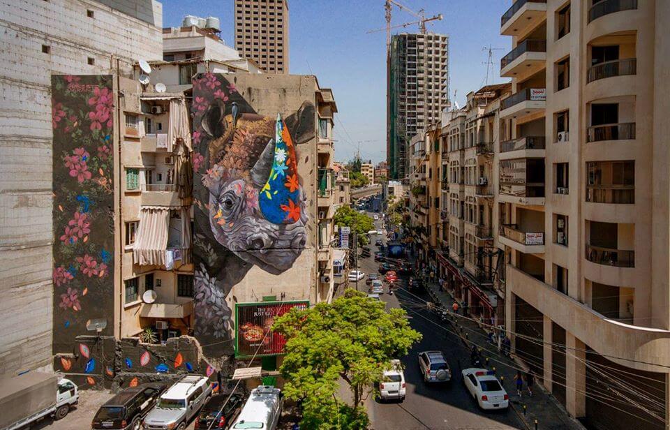 Ernesto Maranje’s Street Art Mural The Rhino and the Oxpecker in Lebanon, 2017