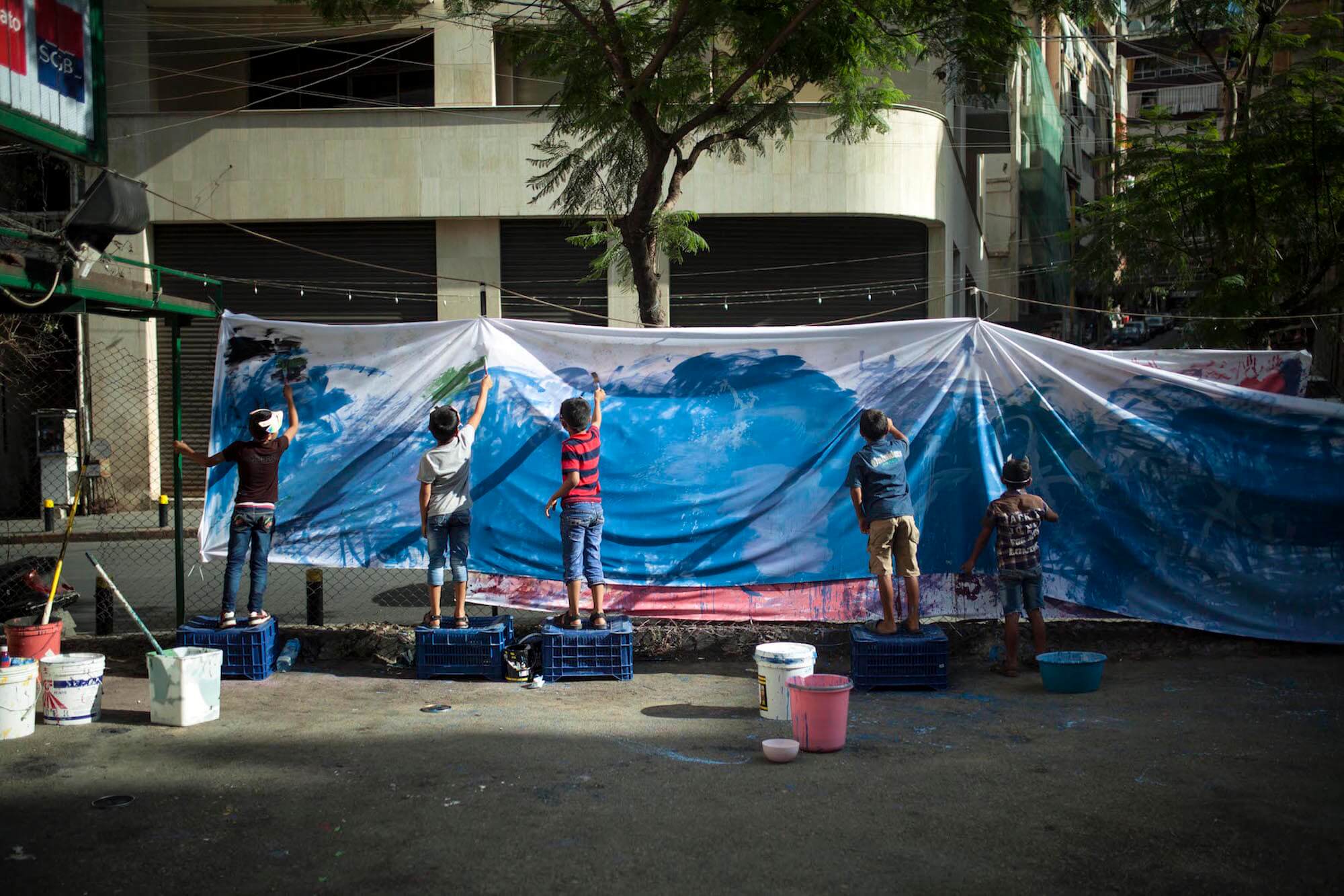 “While still recovering from it’s own civil war, Lebanon has taken in huge numbers of refugees fleeing the current conflict in Syria as well as Iraq and Palestine. One in every five people living in Lebanon is a refugee from another country. Lebanon’s recent civil war combined with scarcity of jobs, resources and space causes tensions between people from different backgrounds.” aptART