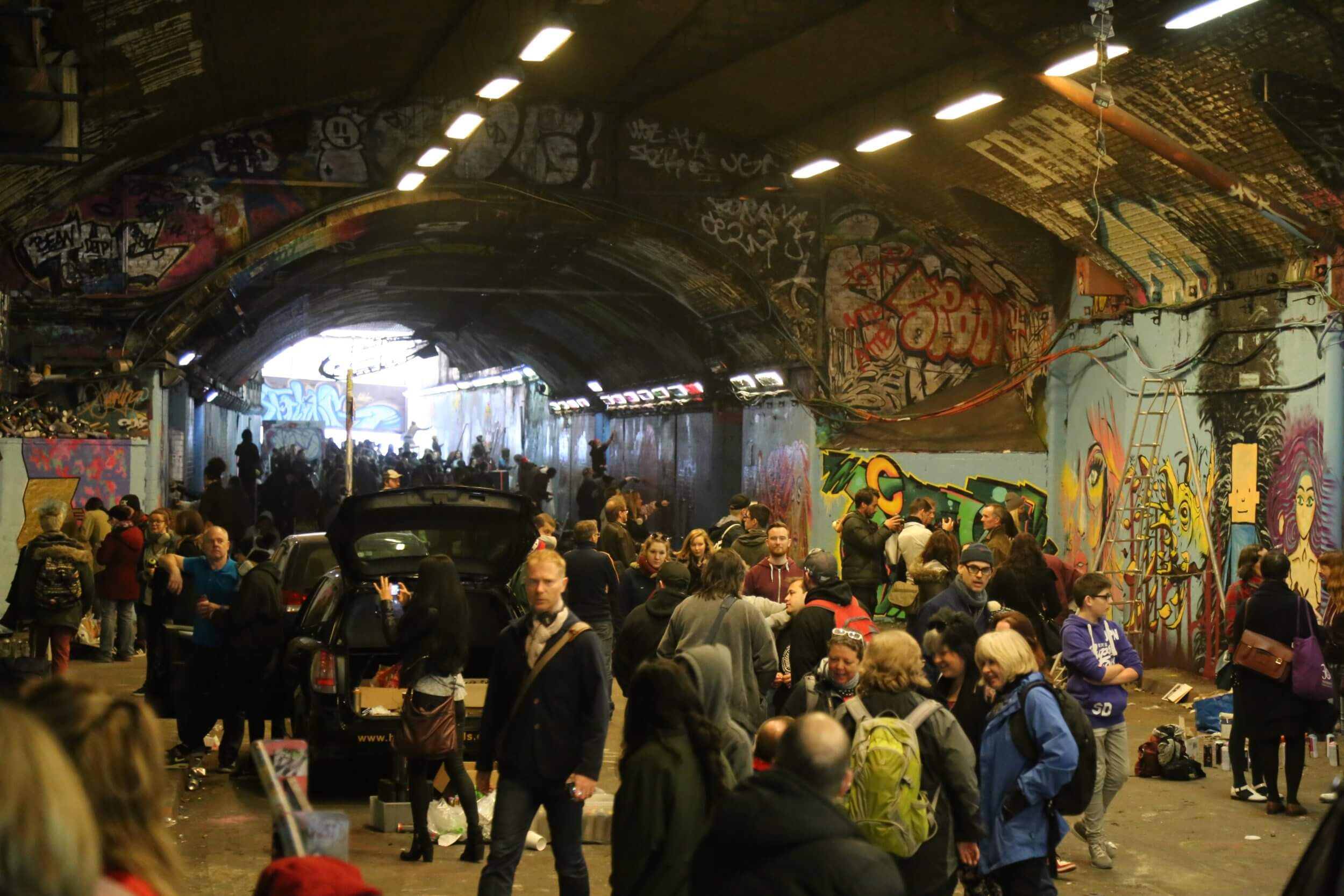 The murals started to complete late afternoon and the artists could relax and chat to the many visitors now taking over the ‘Banksy’ tunnel!