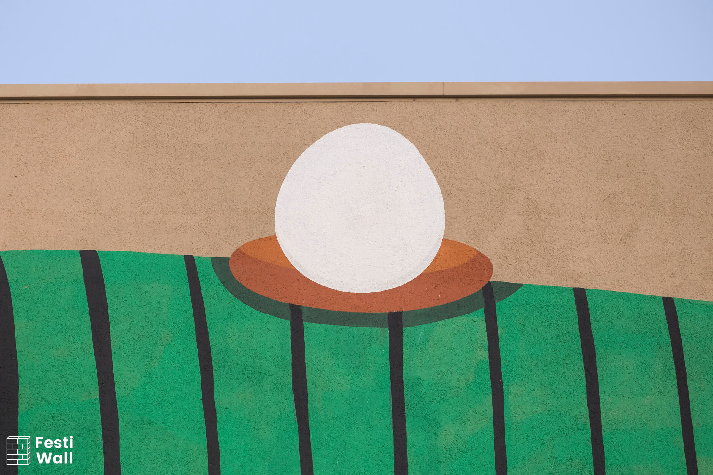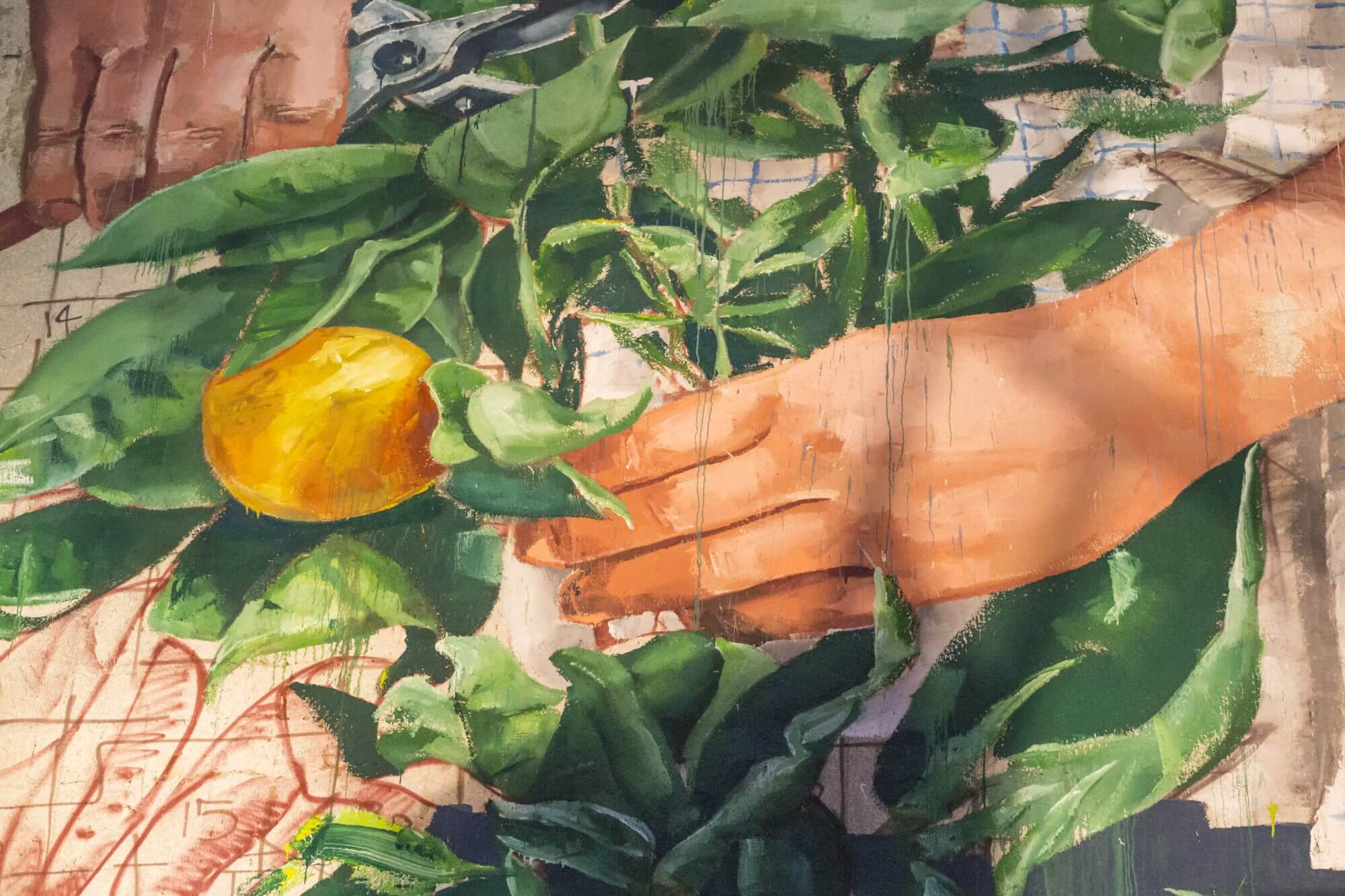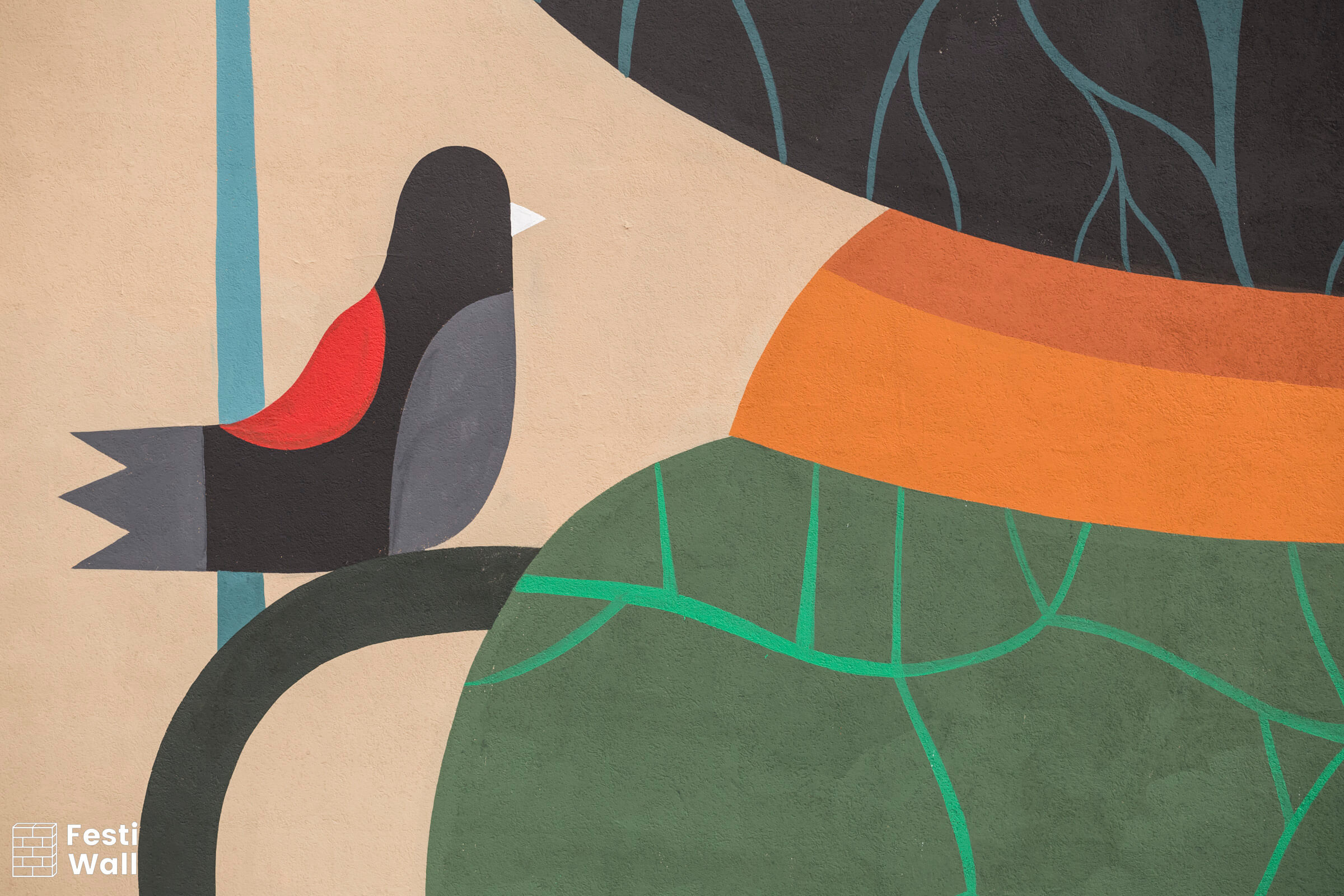 Fintan Magee closes the festival with the last wall to be painted. Fintan Magee mural is titled “The Gardener” lost between the concrete buildings built in the 1980’s. The gardener is growing oranges between the cactus plants reiterating the festivals aim to regenerate.