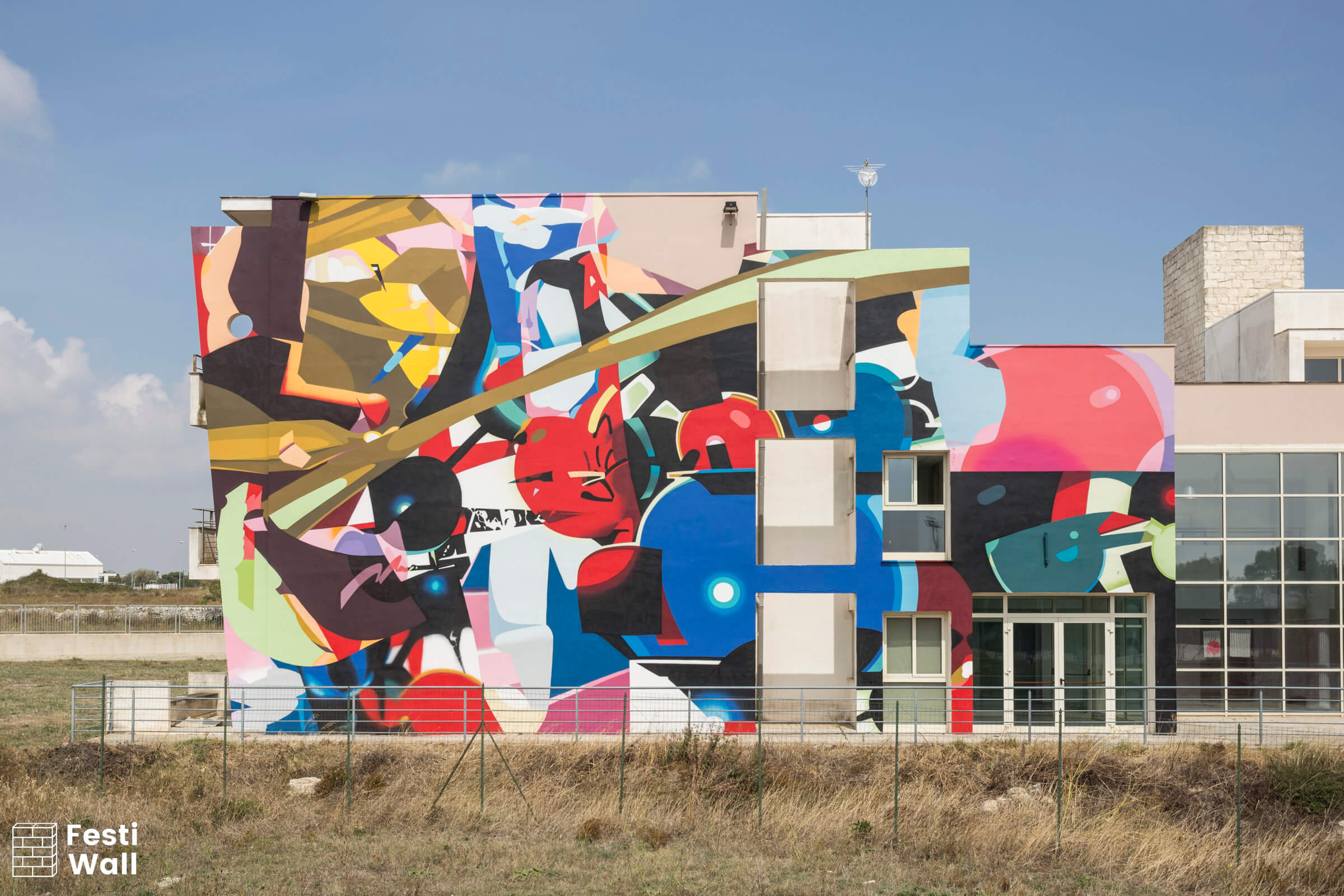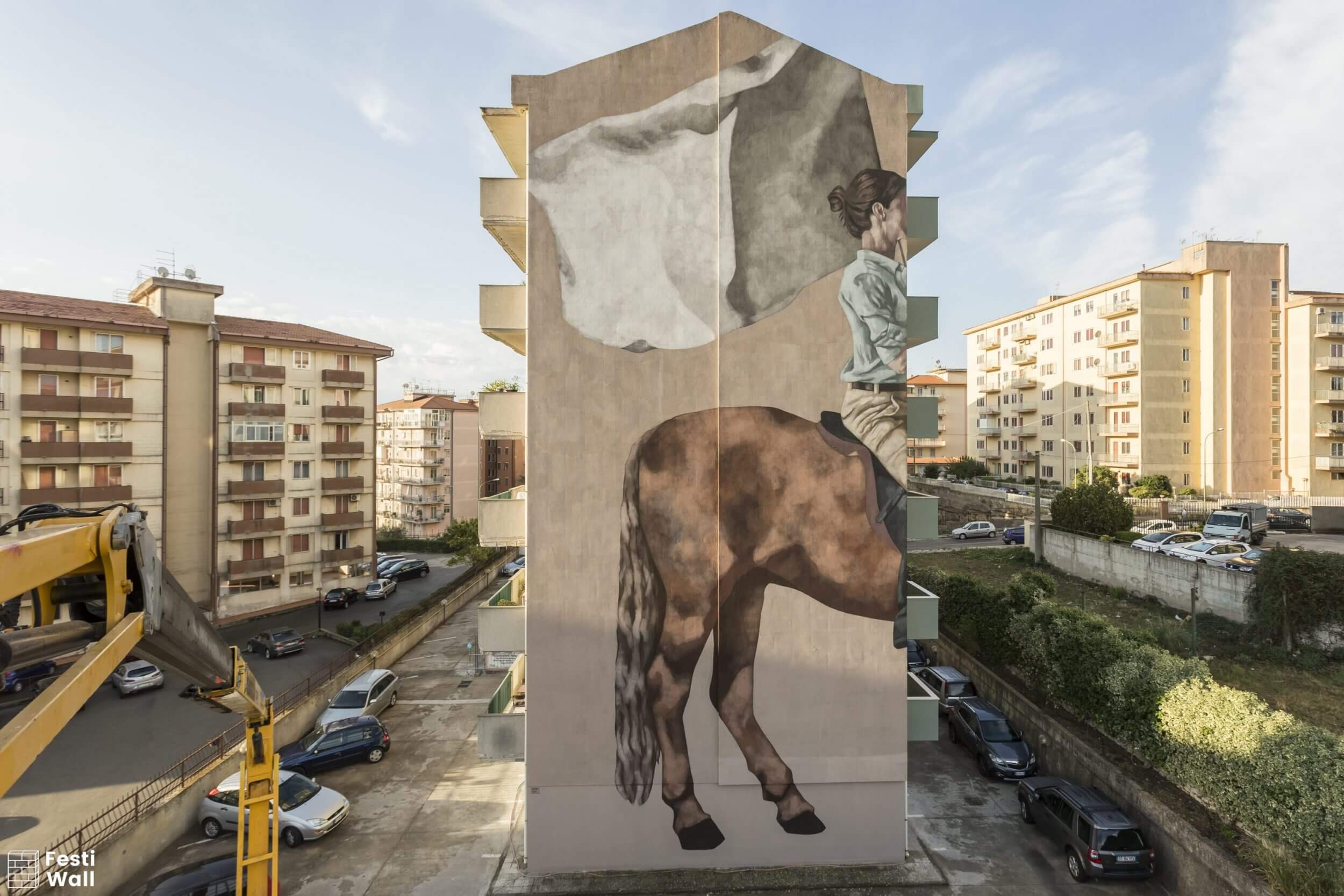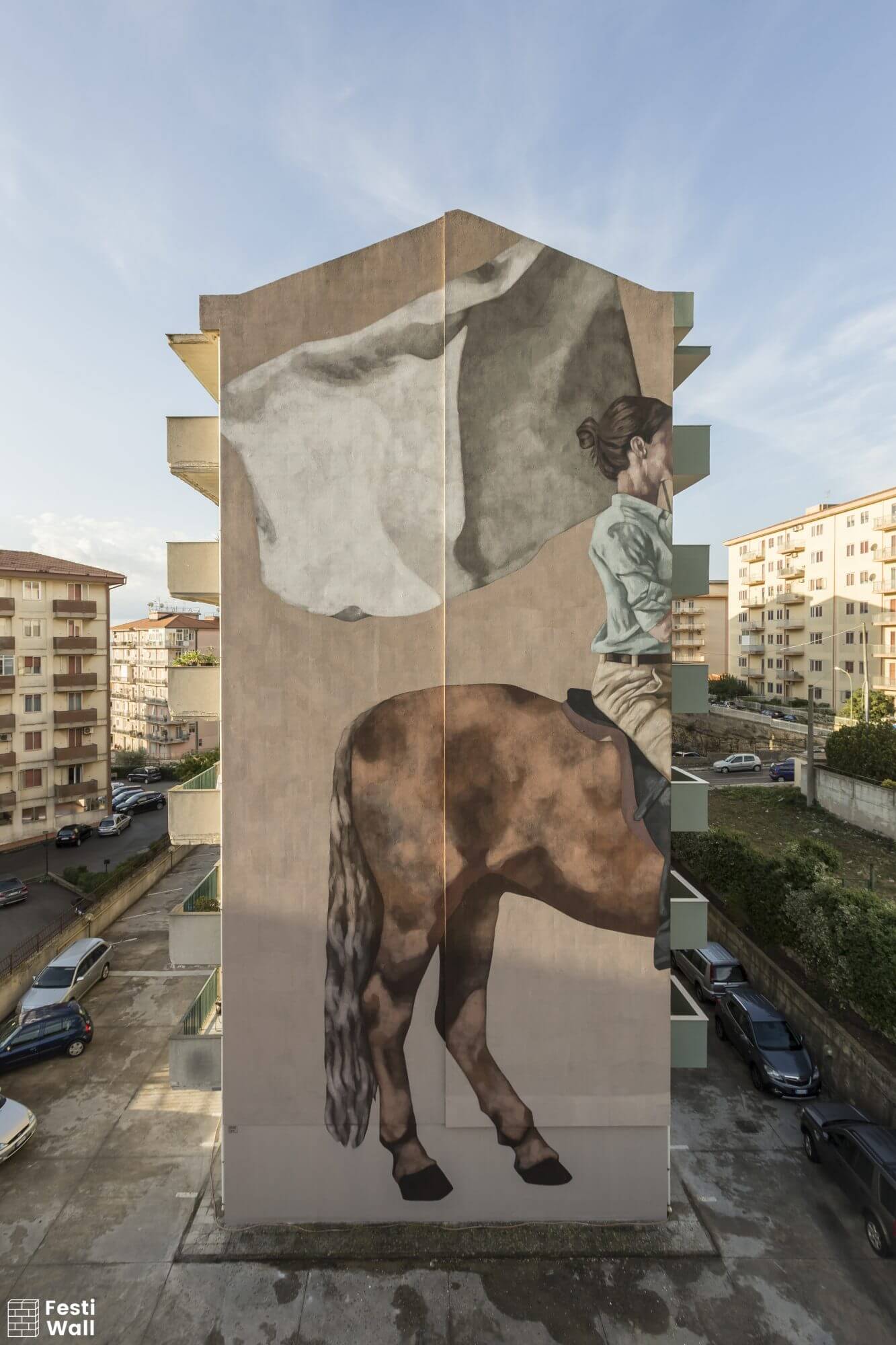 For the 2016 Edition all the walls were painted in a well-defined area of Ragusa. The district, known locally as “Wild” is an area for public housing. In the 1980’s the area was built upon with large ugly residential buildings and for years been synonymous with urban decay.