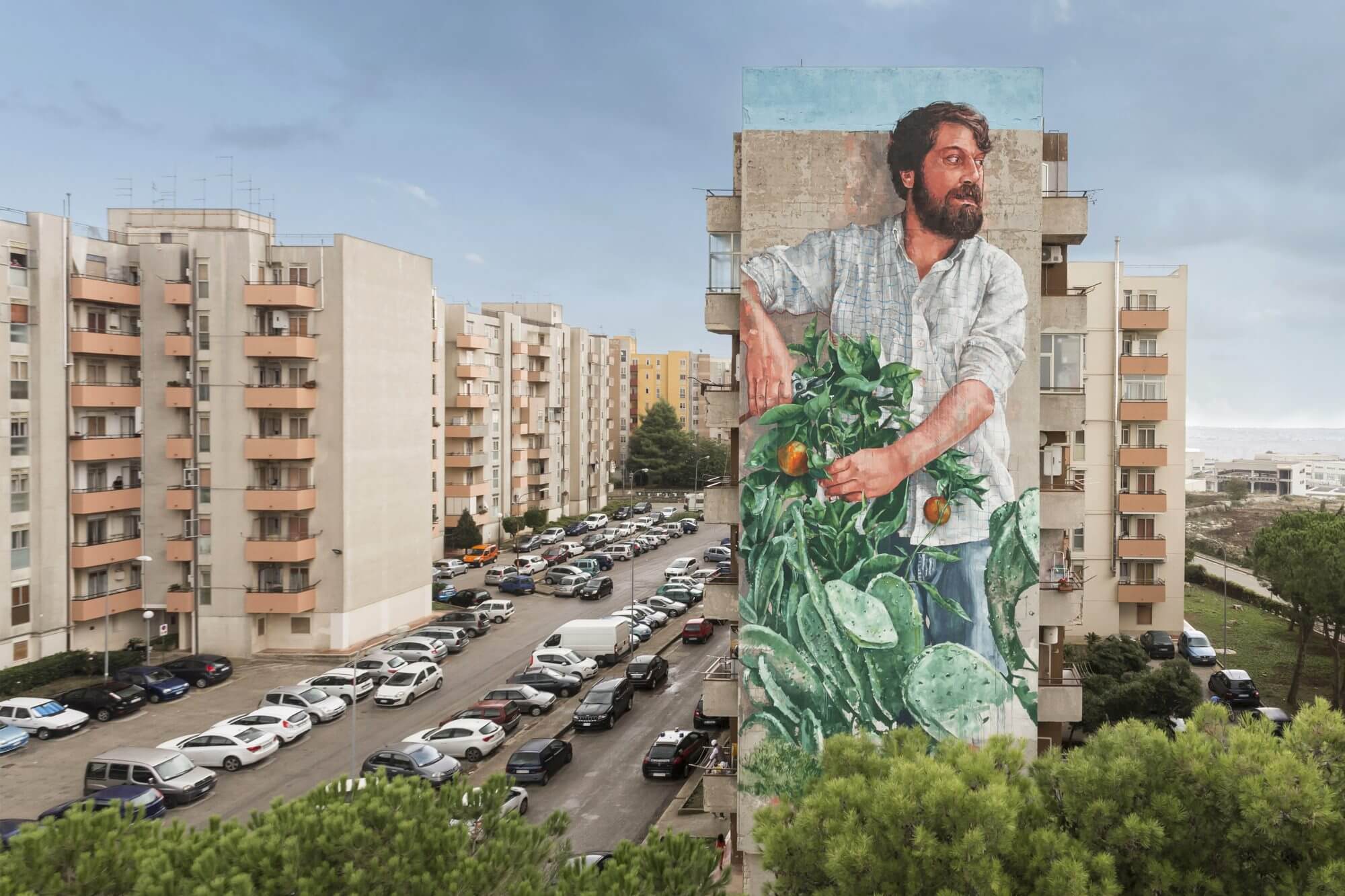 FestiWall has just wrapped up their second street art festival in Ragusa, Sicily. Five large murals were painted by five international street artists including Hyuro, Evoca1, SatOne, Augustine Iacurci, and Fintan Magee. FestiWall aims to activate urban regeneration with positive awareness.