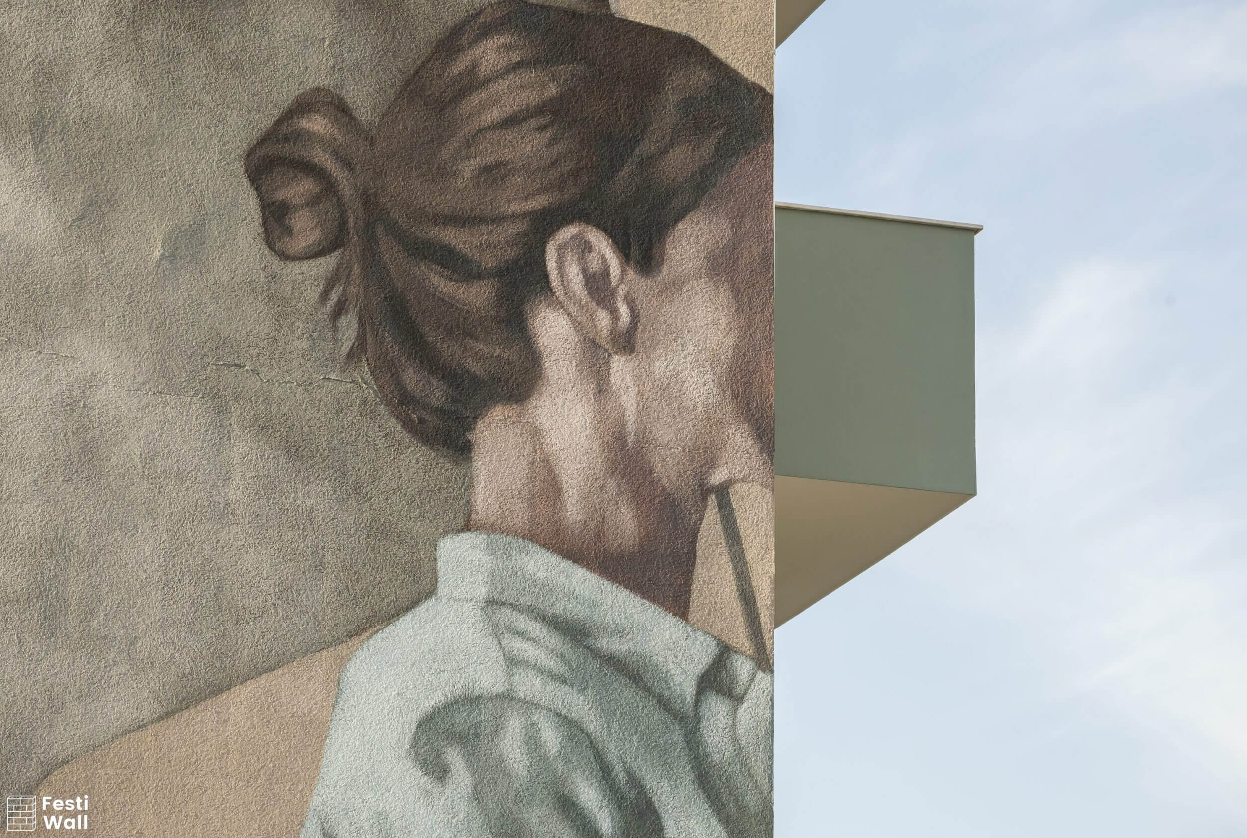 Maria Occhipinti’s life has not been easy, her quest for freedom and struggle against all kinds of injustice forced her to be uprooted, to move like a nomad without a home. A life full of pain and loneliness, a woman who, by her way of thinking, was marginalized by her people, one of the reasons why she had to live her life in exile. The journey was for her a way to affirm her own freedom, to revolt against bourgeois normality. Maria was a woman who always remained firm in her convictions, sacrificing her life for ideas that went beyond herself, it is her humanity that always prevails in all her actions.This wall speaks of her passion, her freedom and greatness, but it also represents the incomprehension, abuse and marginalization she had to live with all her life.” Hyuro