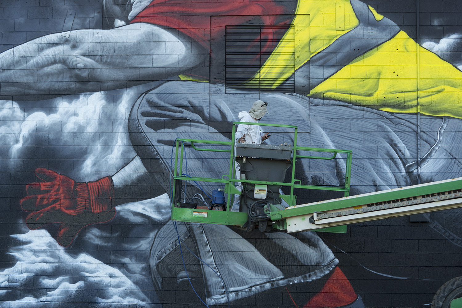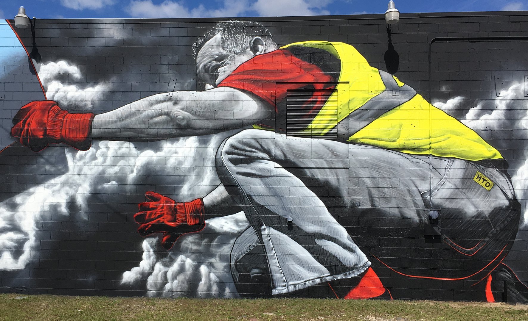 French Street Artist MTO have just finished a mural in Jacksonville titled “On lâche rien /We don’t give up”. The mural’s main subject is concentrated on the “Yellow Vest Movement”, and is painted at a diesel company, Diesel Parts Sales Service Inc.