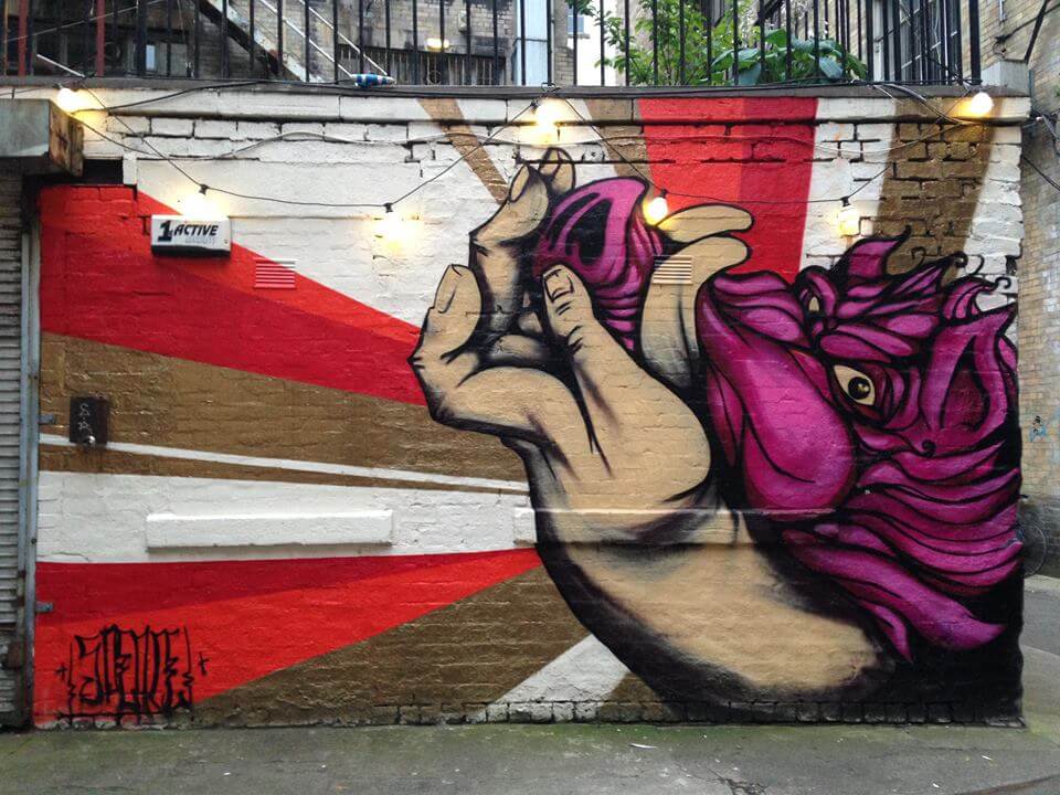 The art is here is big. Life size artwork is rare and when they do appear, the characters are crawling out of the walls or walking beside you. Sam Bates, Smug and Rogue- One are just some of the artists that have contributed to these beautiful pics of public street art.