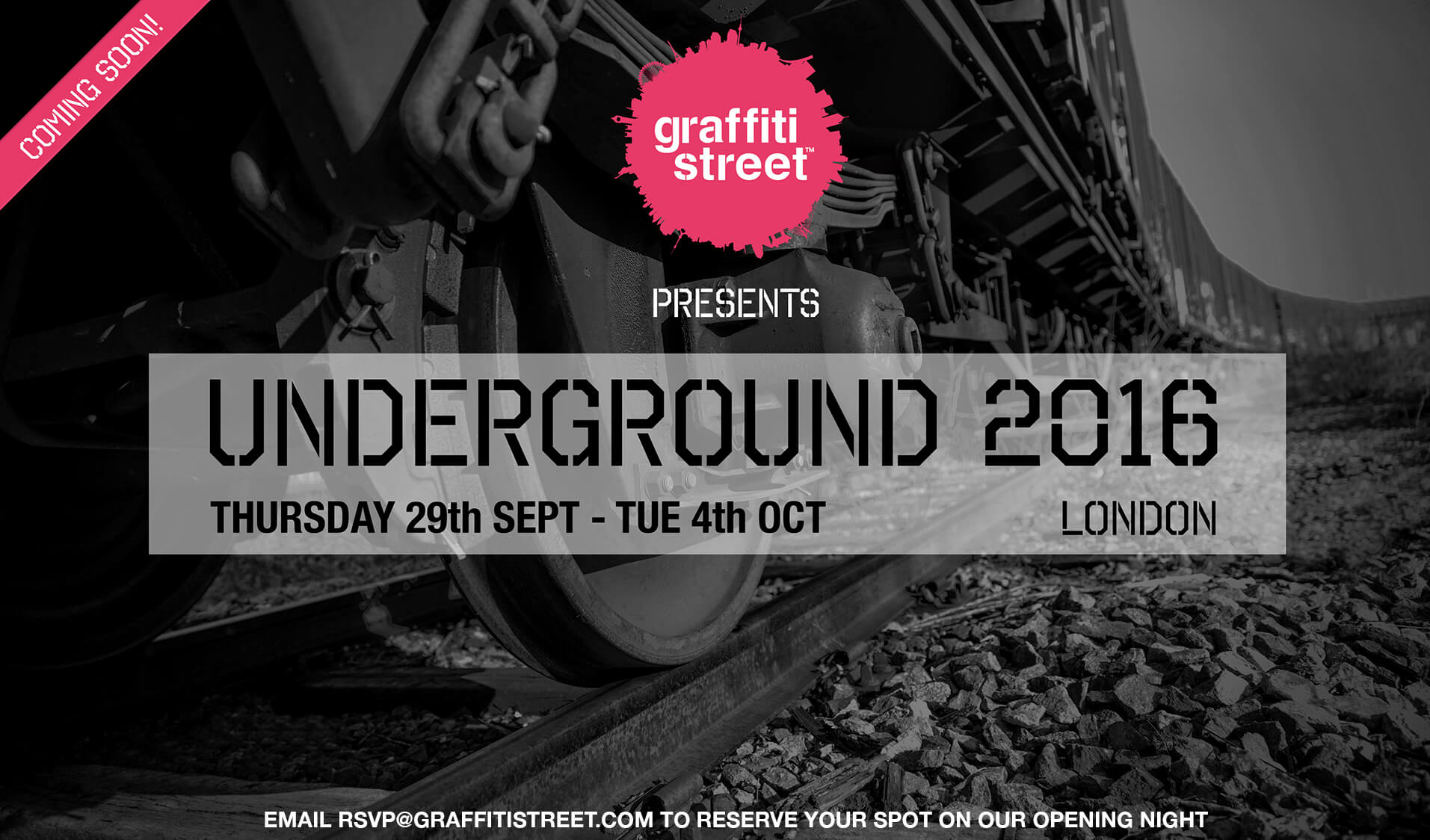 The GS Team are proud to announce our second instalment ‘Underground 2016’ is coming back to London and will be held at Hoxton Arches, Arch 402, Cremer Street, E2 8HD. Underground 2016 will showcase a fresh new body of artwork produced exclusively for this unmissable exhibition. Each selected artist will bring their own style, background and culture to the event, creating a truly international affair. This will be an excellent opportunity to purchase some unique original artwork by well known and emerging street and graffiti artists.