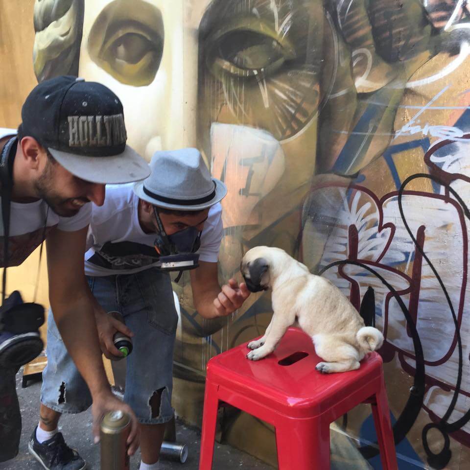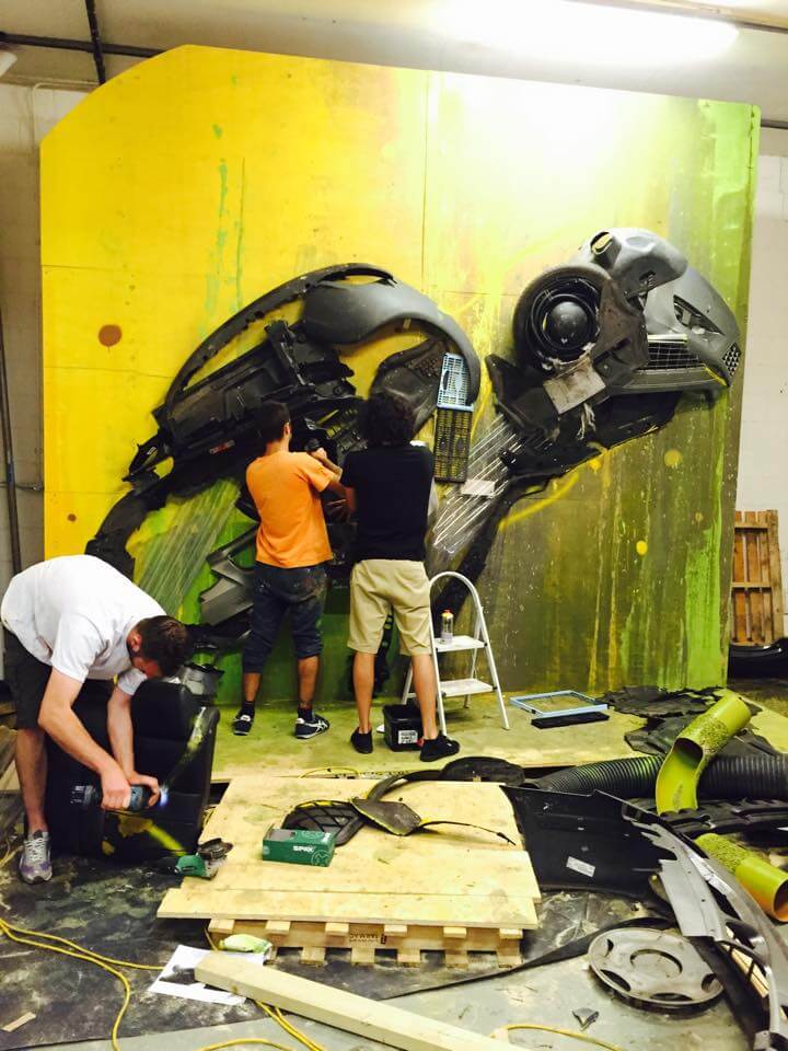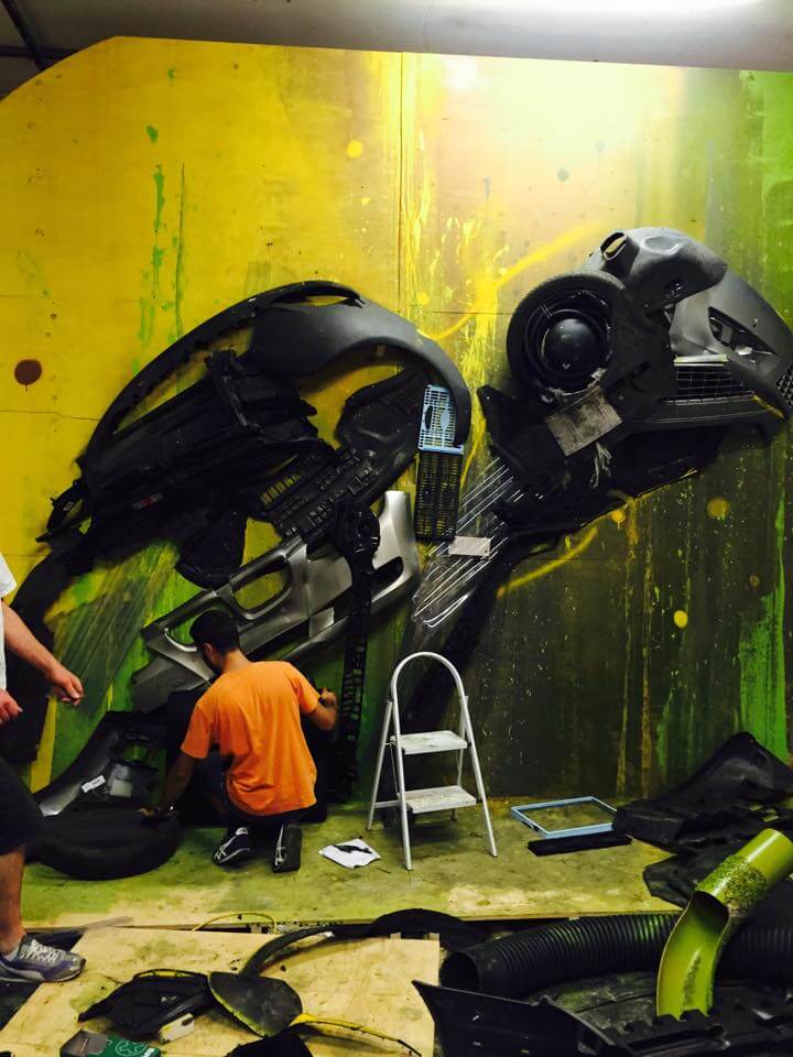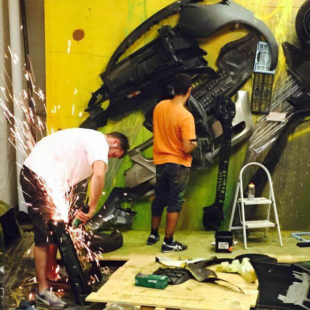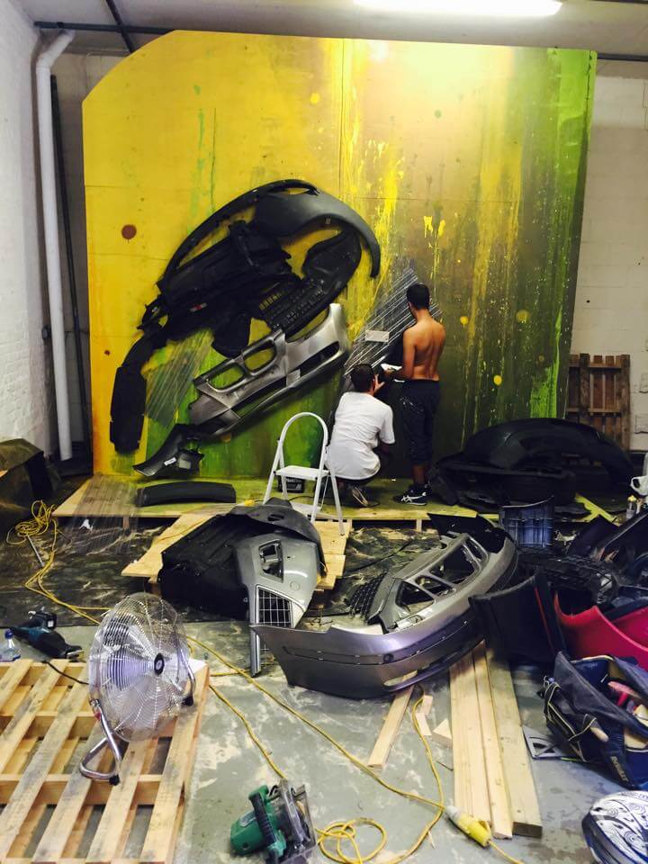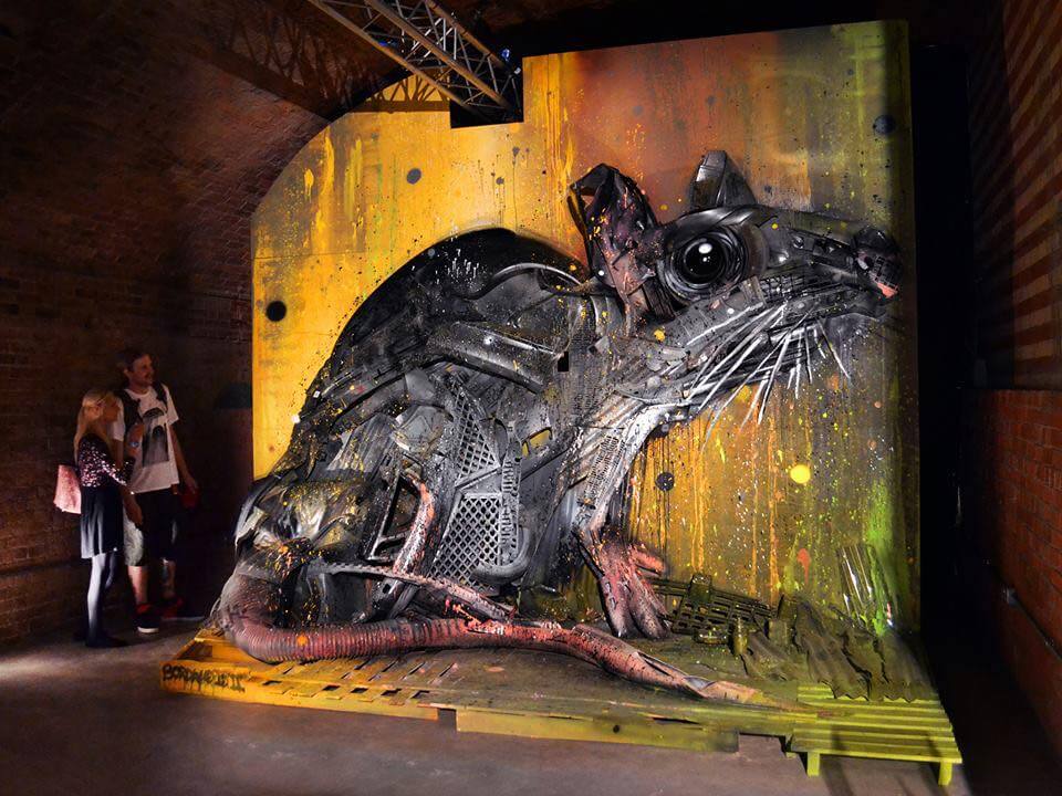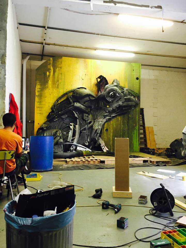 Bordalo II could be found in the studio working hard on his mammoth sculpture of the London Rat with his trusty assistant James T… reusing the very trash Londoners throw away onto the streets. Read more about Bordalos ethos here and check out his work for the GraffitStreet ‘Underground’ group show here. Don’t worry GraffitiStreet is bringing Bordalo II back to London later this year to bring his Big Trash Animal to the streets of Shoreditch and we cant wait to work with this talented young man again! Watch this space!