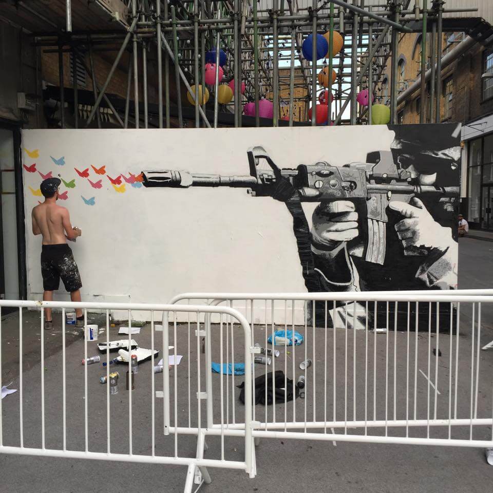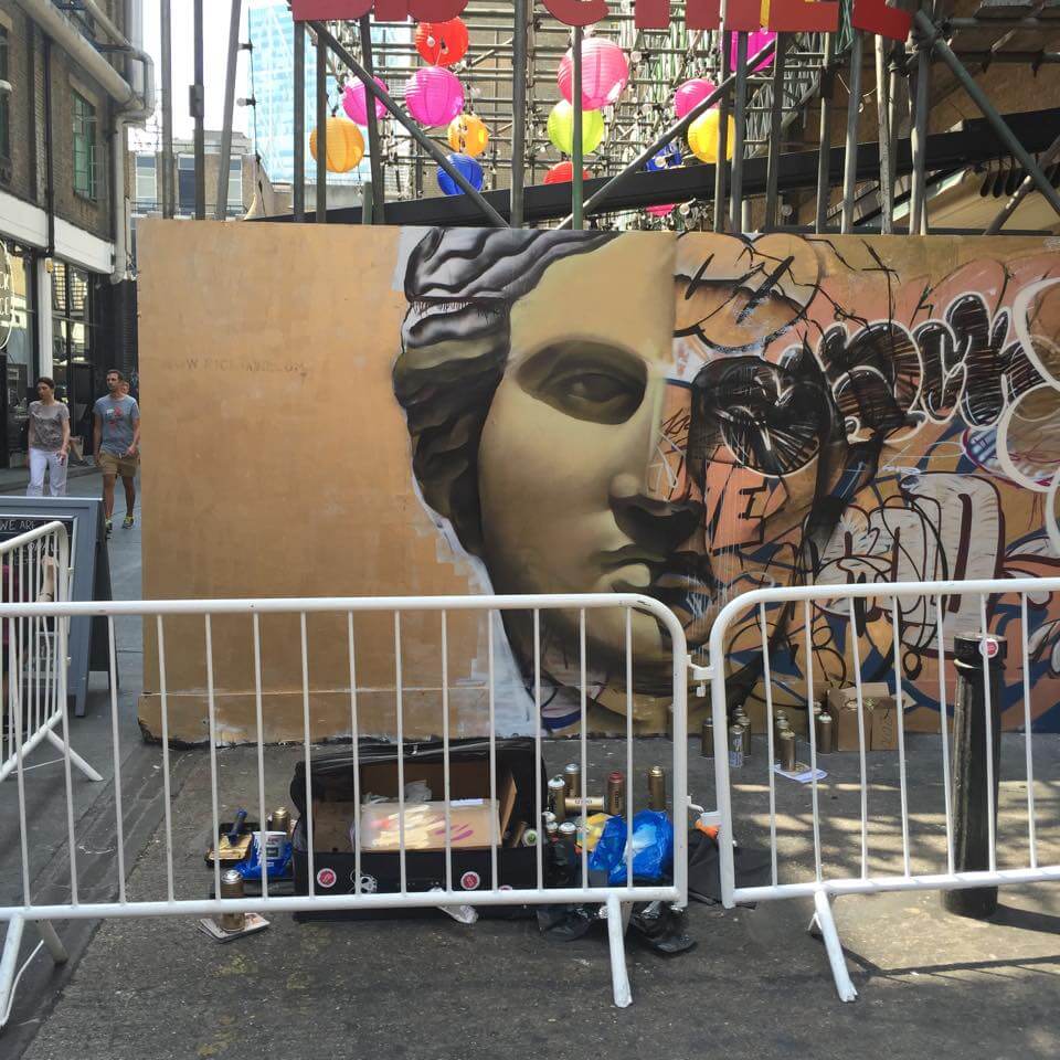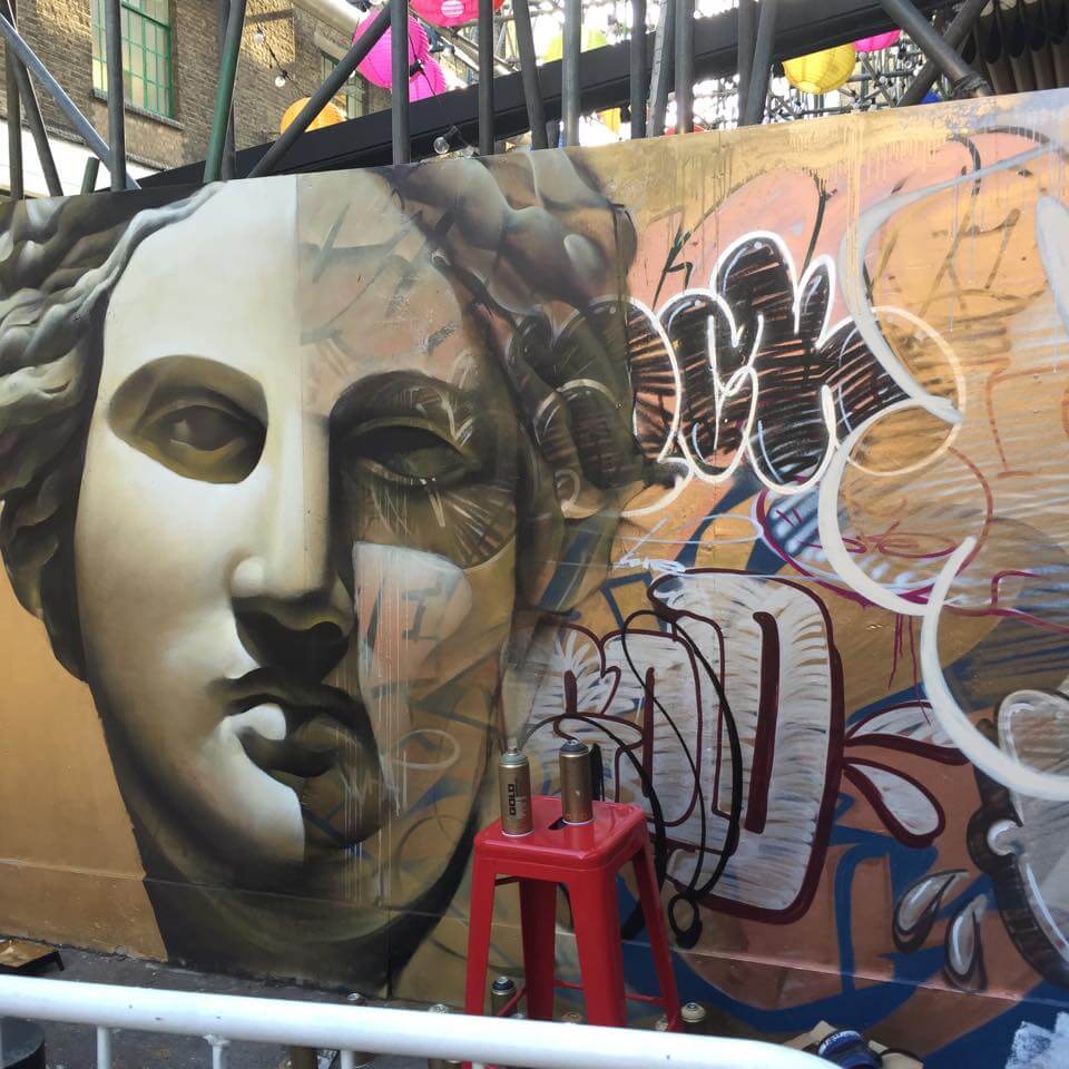 Spanish duo Pichi and Avo continued their ‘gold series’ at the popular Truman Brewery in Shoreditch, next to the Big Chill Bar who looked after the artists with great food and drinks throughout the hottest day of the decade! Thanks guys!!