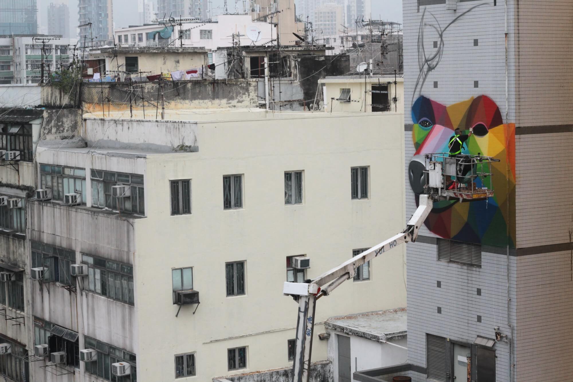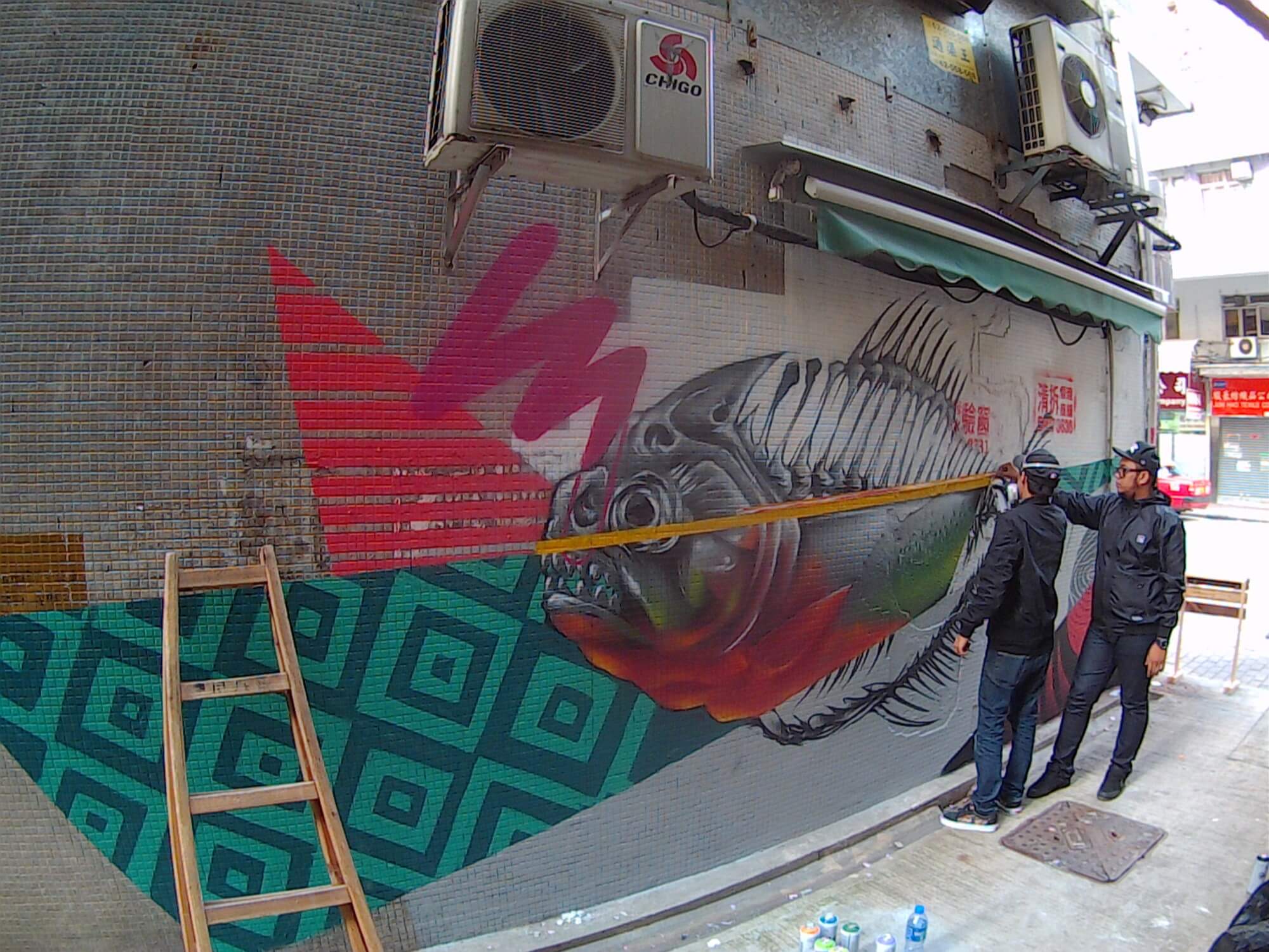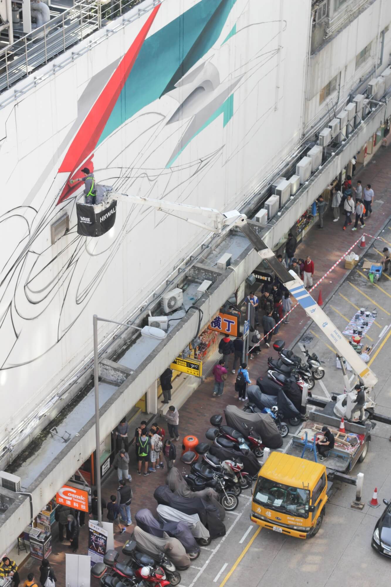 Thirty-eight artists painted over thirty murals, walls, shutters, trucks and entire buildings! This year’s featured artists include: Above(US), Alana Tsui (HK), Caratoes (HK), Clog2 (Singapore), Colasa (Taiwan),DILK (UK), Dmojo (Malaysia), Egg Fiasco (Philippines), Essah Qinoirs (HK), EXLD (Philippines), Faust (US), Gan (China), GAS (China), GR1 (Korea), Keflione (France), Kenji (Malaysia), KristopherH (HK), Mauro149 (Italy), Mooncasket (HK), Mysterious AL (UK), Okuda (Spain), Paola Delfin (Mexico), Parents’ Parents (HK), Peeta (Italy), Phron & Sars (China), Roids (UK), RYCK (France), Satr (China), Stern Rockwell (USA), Suiko (Japan), Tamsl (China), Vhils (Portugal), Whyyy (China) and Zids (Thailand)