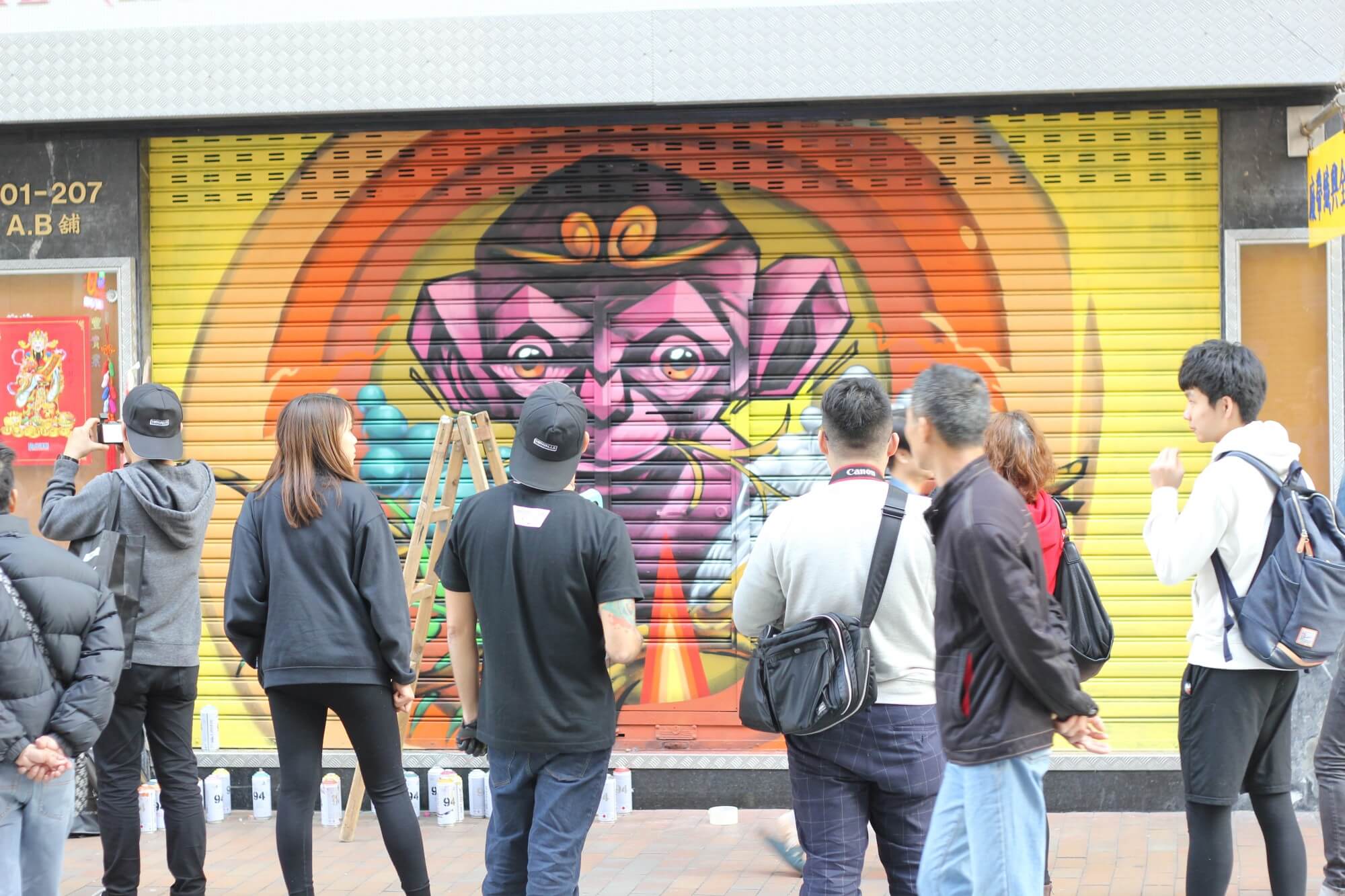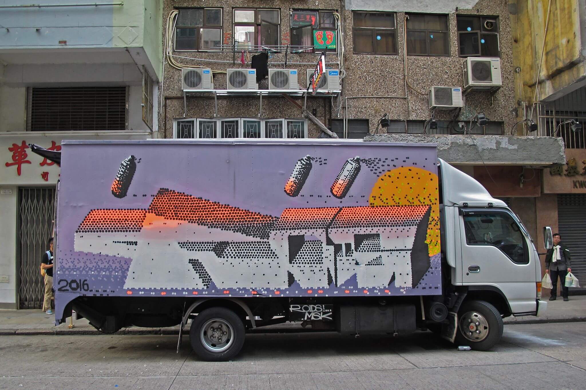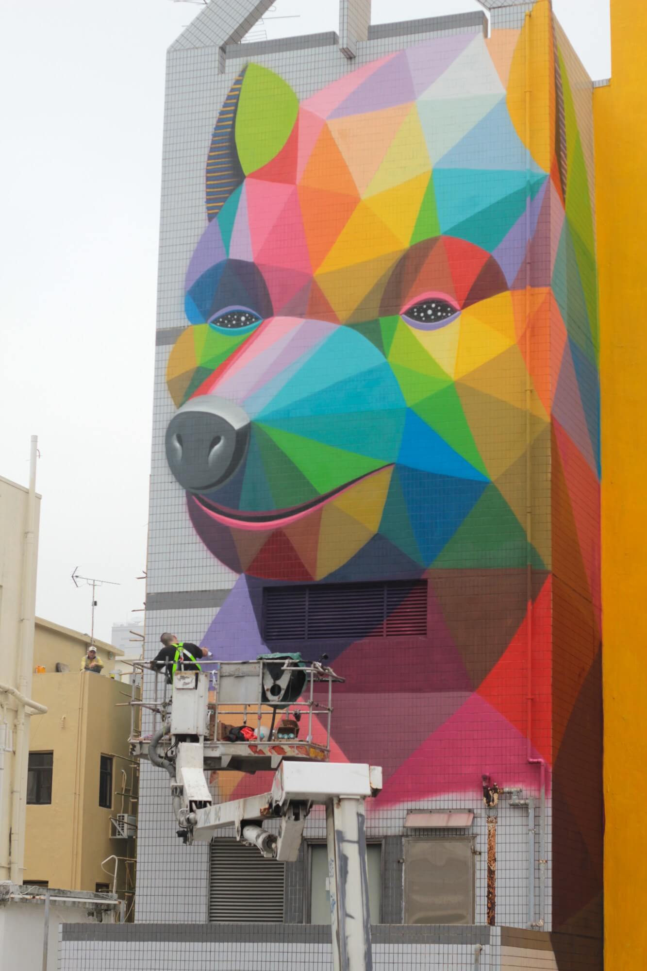 Thirty-eight artists painted over thirty murals, walls, shutters, trucks and entire buildings! This year’s featured artists include: Above(US), Alana Tsui (HK), Caratoes (HK), Clog2 (Singapore), Colasa (Taiwan),DILK (UK), Dmojo (Malaysia), Egg Fiasco (Philippines), Essah Qinoirs (HK), EXLD (Philippines), Faust (US), Gan (China), GAS (China), GR1 (Korea), Keflione (France), Kenji (Malaysia), KristopherH (HK), Mauro149 (Italy), Mooncasket (HK), Mysterious AL (UK), Okuda (Spain), Paola Delfin (Mexico), Parents’ Parents (HK), Peeta (Italy), Phron & Sars (China), Roids (UK), RYCK (France), Satr (China), Stern Rockwell (USA), Suiko (Japan), Tamsl (China), Vhils (Portugal), Whyyy (China) and Zids (Thailand)