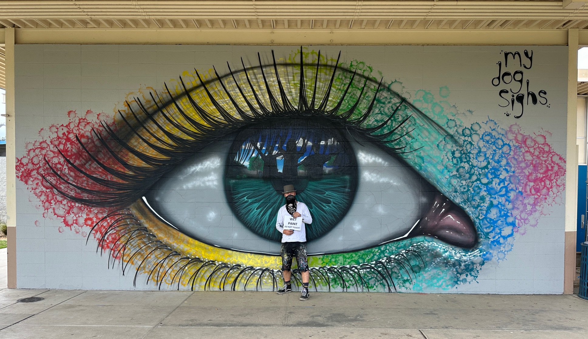 Welcome to this interview with My Dog Sighs, the celebrated street artist from Portsmouth, known for his reflective eyes and ‘Every Man’ murals. Today, we are exploring his incredible journey along the West Coast of the USA, where he took on the ambitious challenge of painting ten walls in just two weeks.