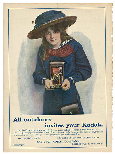 I wasn’t aware of early Kodak advertising with the Kodak girl until I started collecting vintage Kodak advertising in 1977. At the time I was already a professional photographer but I identified with the spirit of these early ads.