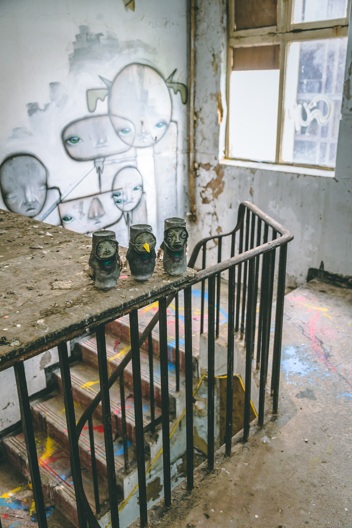 My Dog Sighs’ has turned his attention to installation art; the show will be an incredible look at his artistic growth over the last 18 months. The multi-story complex that houses the installations is the perfect setting for the artist’s own creatures, dubbed his ‘Quiet Little Voices’, as his playful to melancholic painted murals and sculptures fill the unsettling abandoned space. We catch up with the man himself and chat about his new venture INSIDE…