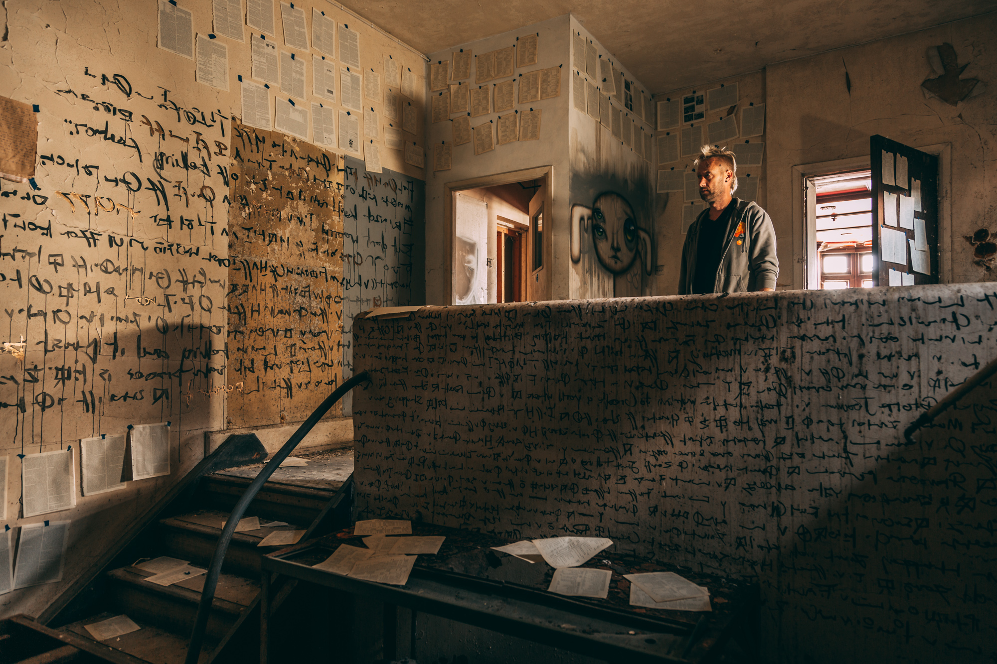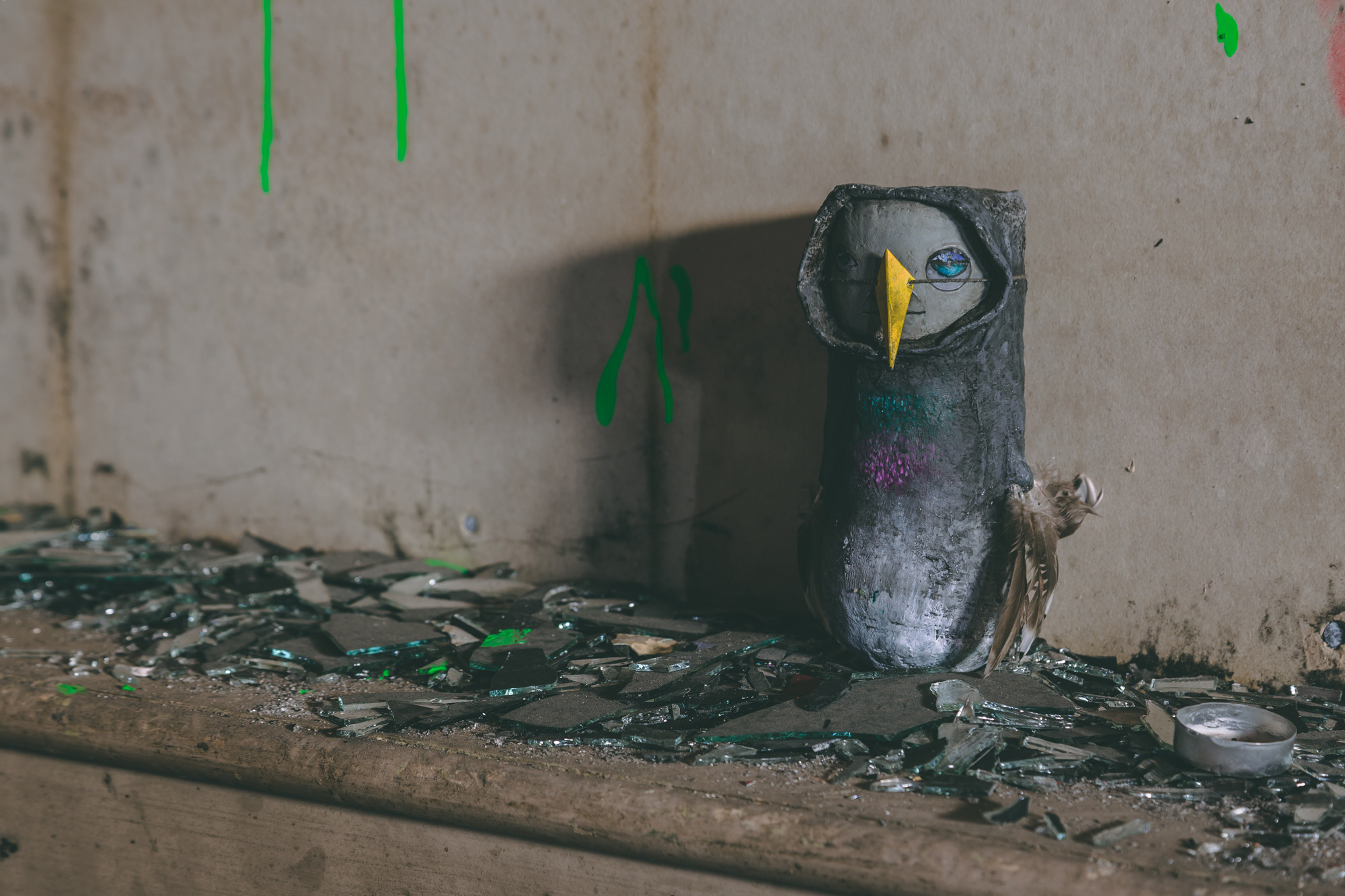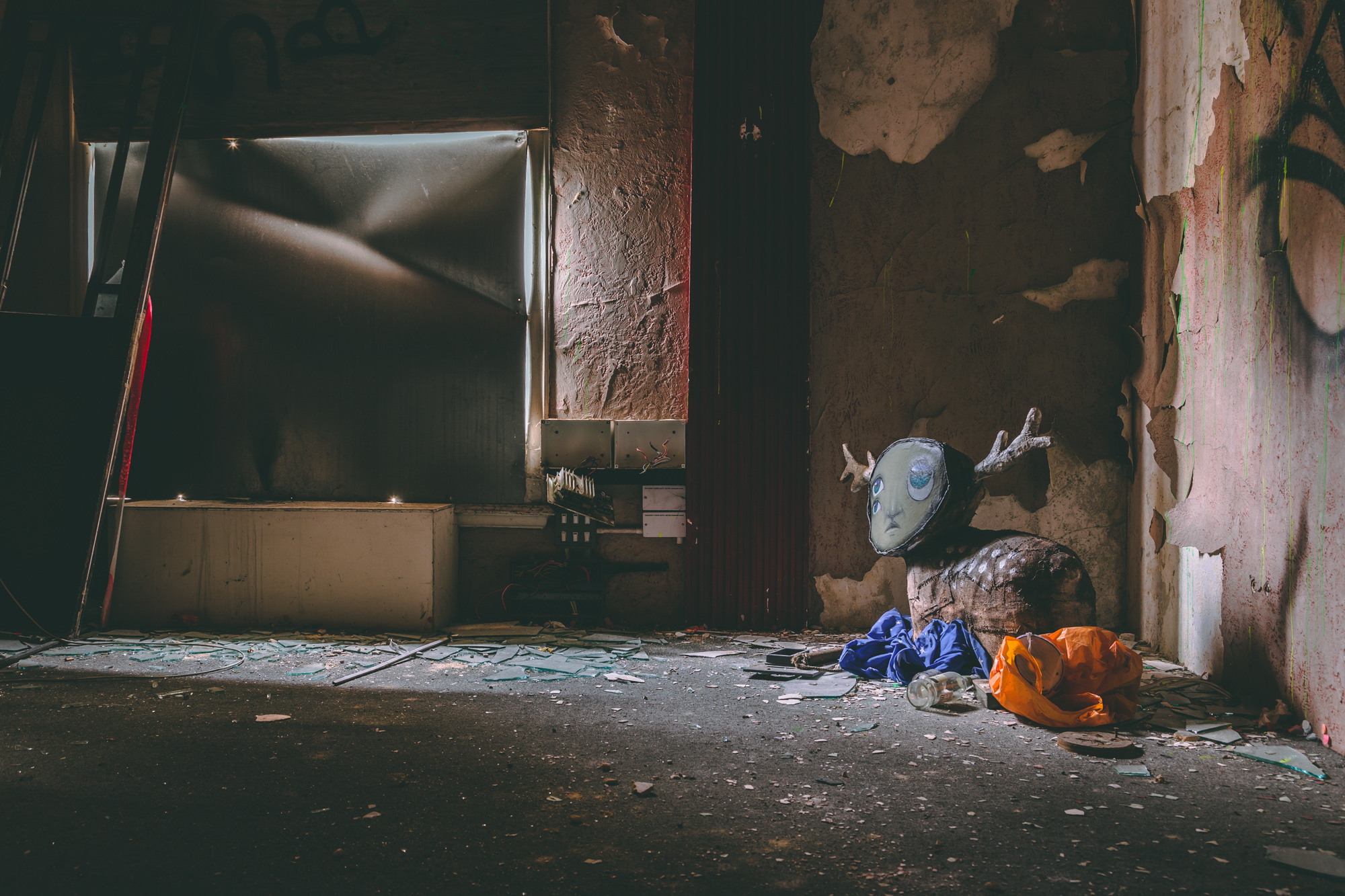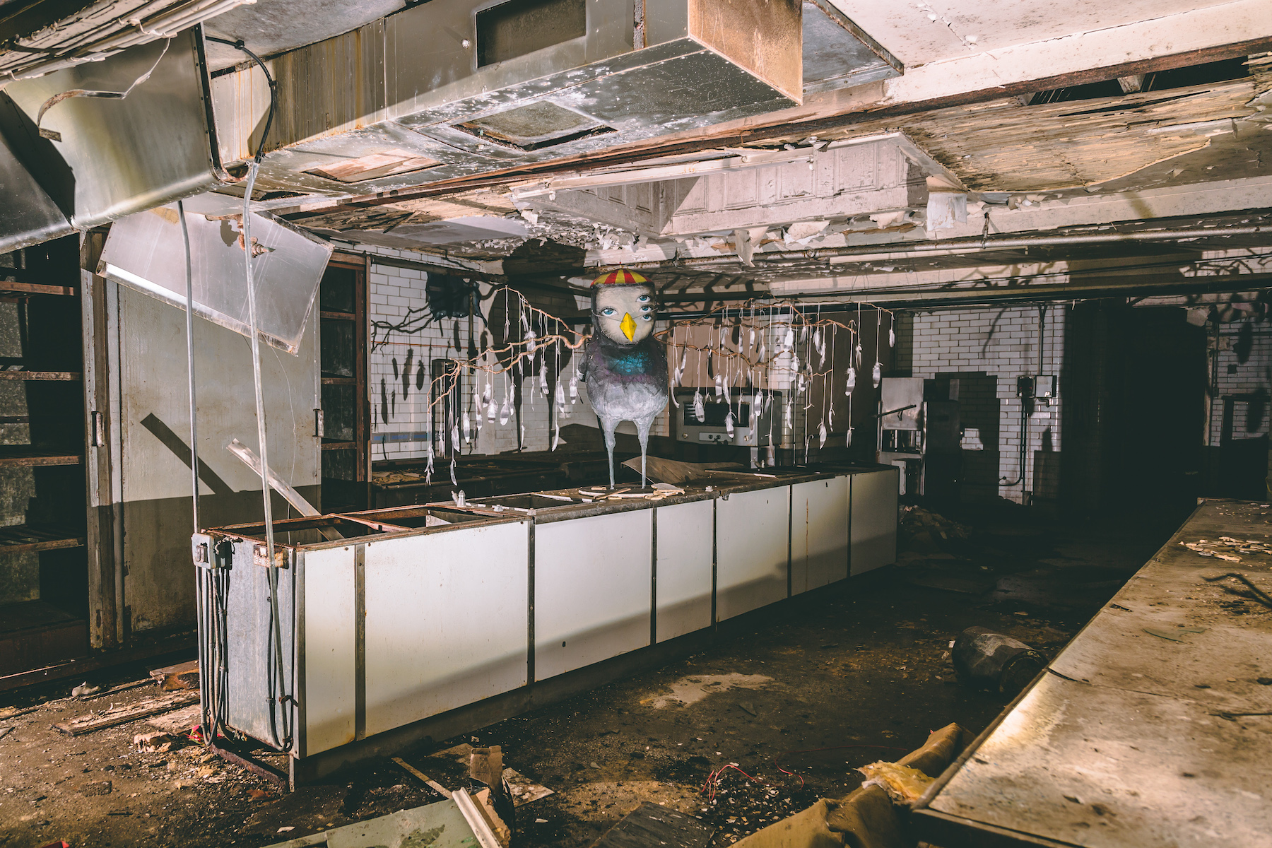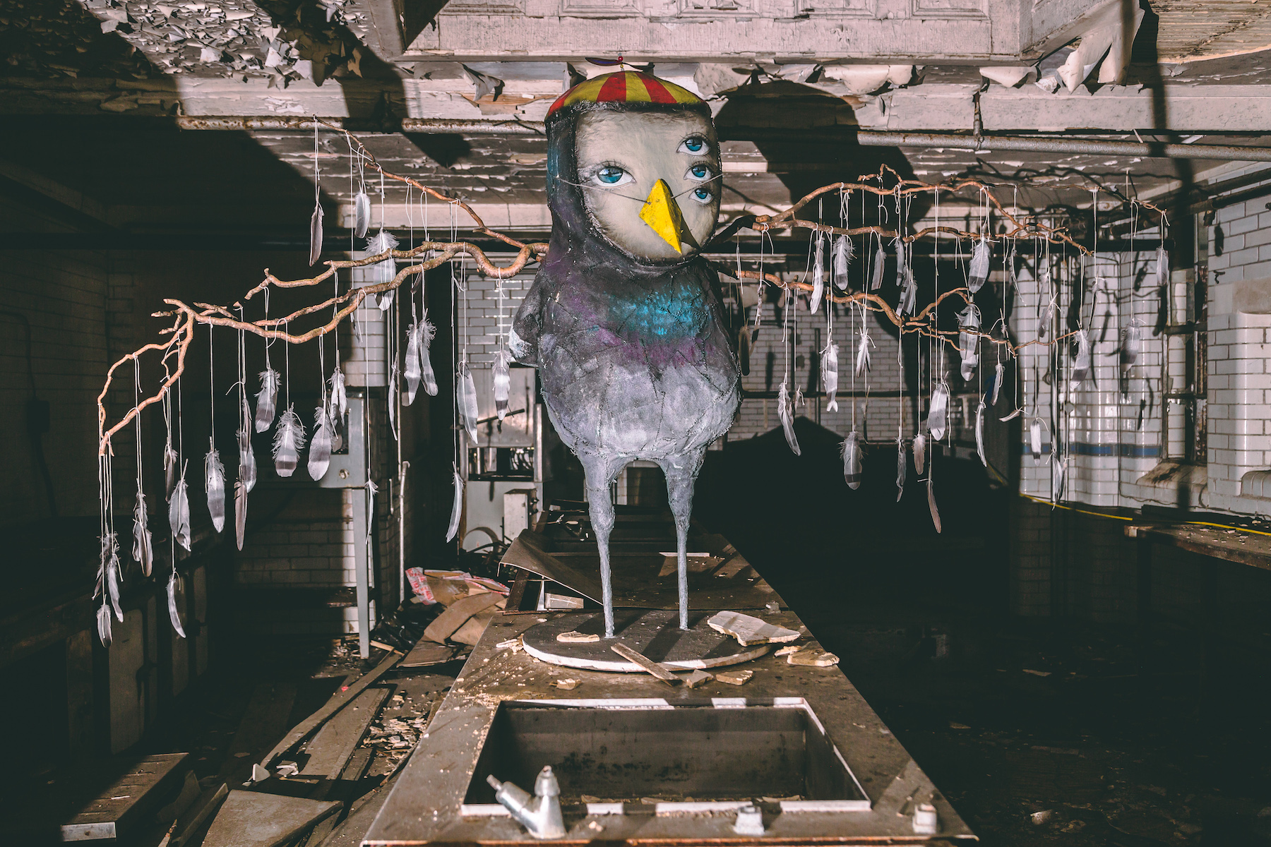 I’d been scoping out a number of the abandoned buildings across the city. Getting the owners to let me in was a different matter. They just didn’t get what I wanted. With this building, everything just clicked. The building owner has been incredible, basically giving me the building for the last 15months to do with as I pleased. I had to first make it watertight. Then evict 300 pigeons, get specialist companies to clear the aftermath of pigeons and an infestation of fleas, as well as keep the aesthetics of an abandoned building but keeping the health and safety officers happy. It’s been a challenge.