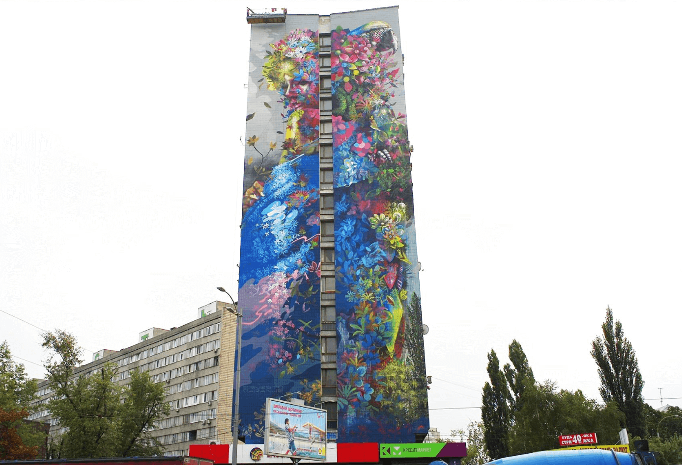 You have painted some seriously high walls, with your latest wall in Kiev being a staggering and impressive 16 storey high building! Do heights concern you? and how do you plan/scale your design for the wall?