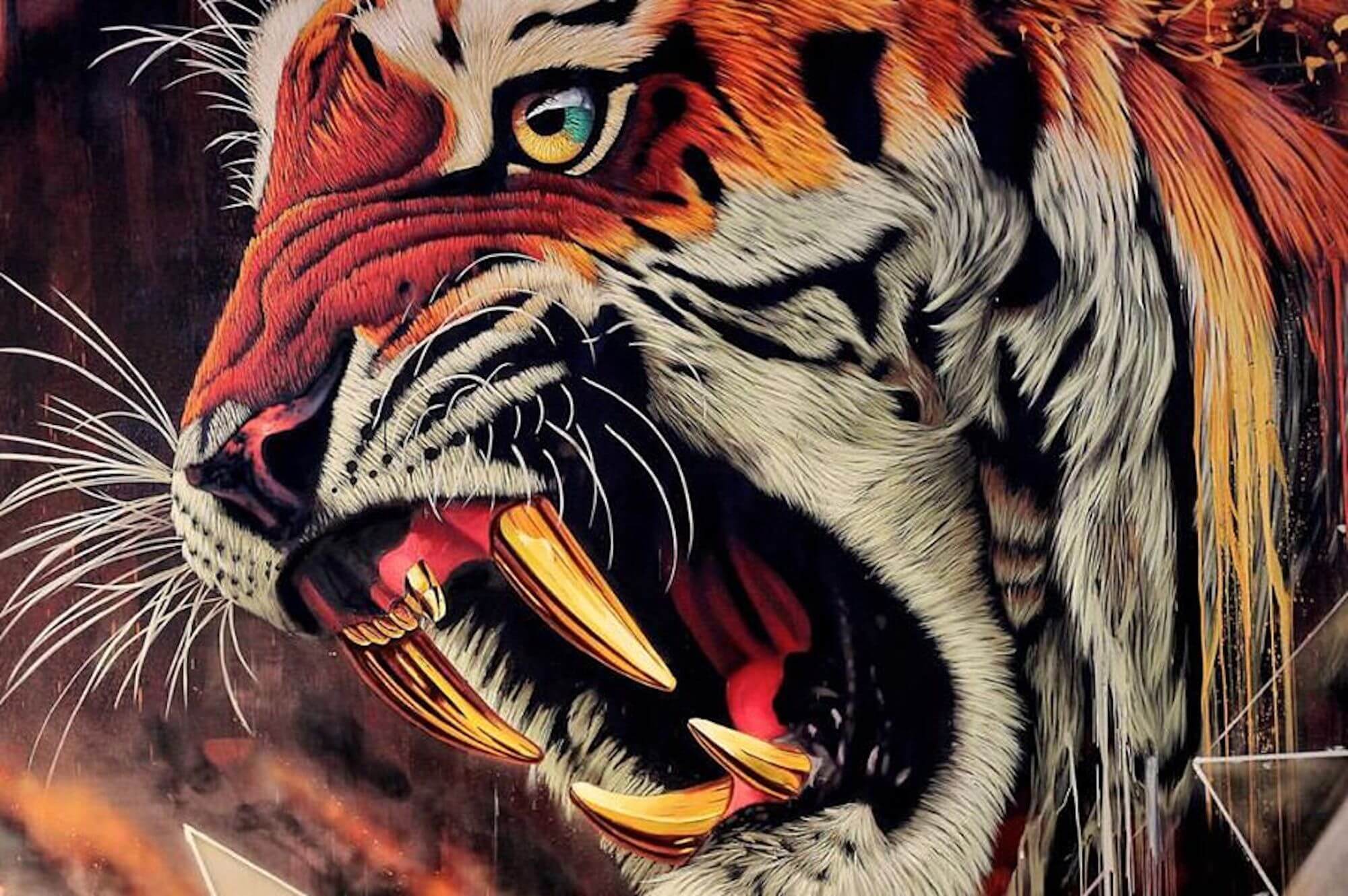I often paint animals with native patterns from their home country. These patterns are used to show how important these animals are to the country’s culture, heritage and people. The message is a simple one; if we lose these animals, we will be losing a huge part of ourselves too. That’s why often the patterns are dripping away, showing how we are losing our legacy.