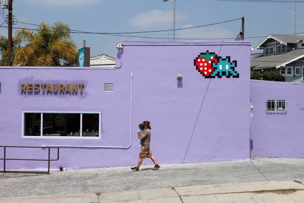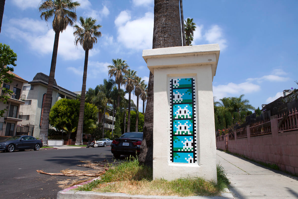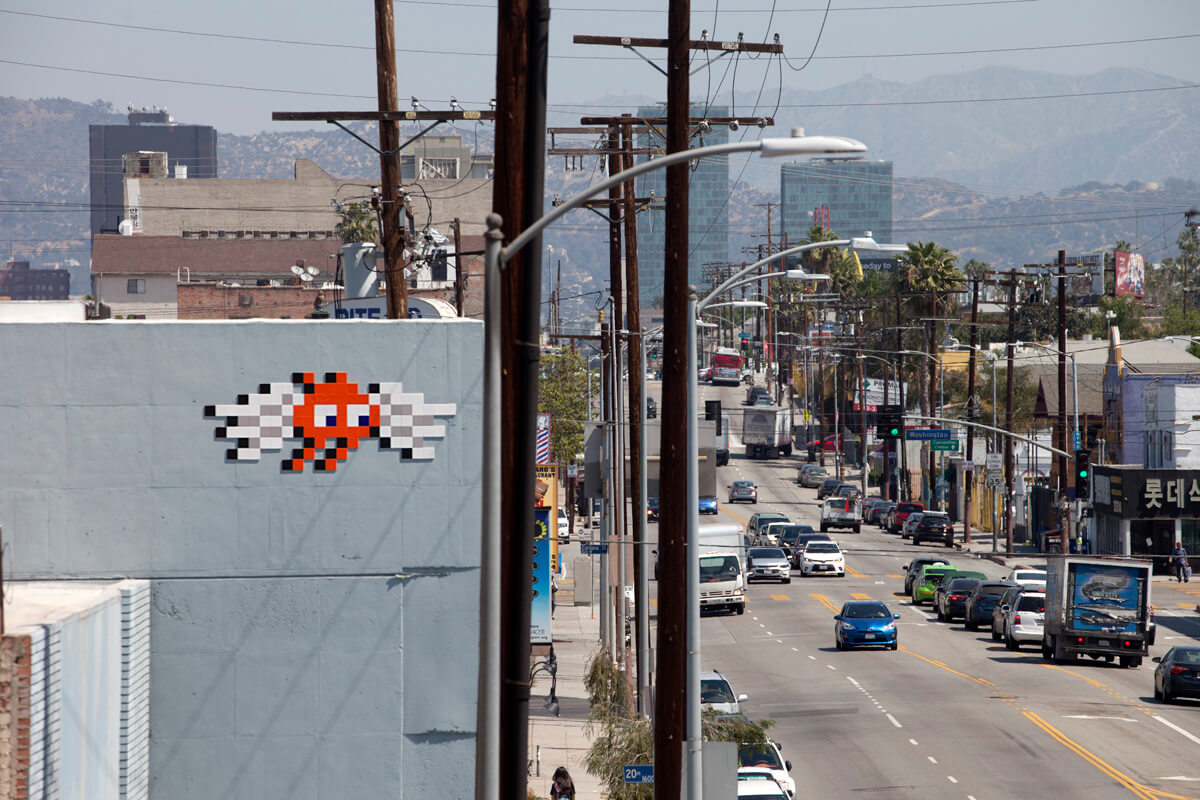 The first mosaic, LA_172, was unveiled at the ‘Beyond the Streets’ exhibit, announcing Invader’s presence in the city. The remaining 28 mosaics can be found throughout the city of Angels.