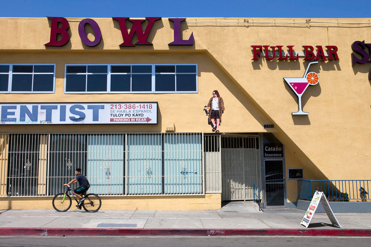 Invader enjoyed hanging out with The Big Lebowski (the mosaic version!) at the LA bowling alley. He even left him a 100-point score and bought him a cocktail. Sounds like they had a blast!