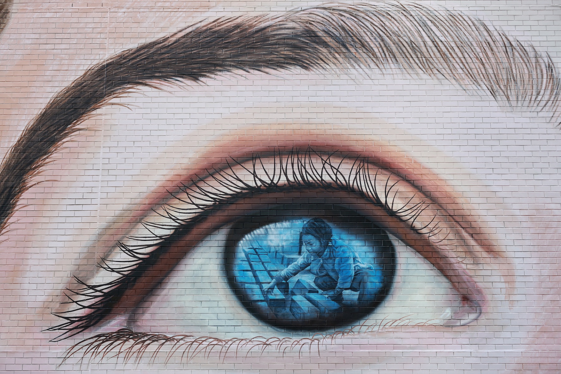 way to do this was to do a portrait that was so large that the eyes would give an iris area (that would be about 1,5 metres, 6 feet from side to side) to be able to paint within the iris the images of other children . So, we have this one child which is a white caucasian child and then we have other children from the 3rd world who were actually photographed in the moment when they were rescued. So, we have different layers to this situation. We have one child who is probably safe, but there’s actually child trafficking going on in NY city as we speak. We can’t assume that it’s just a problem from somewhere else, there’s also a problem in our own backyards. I think that’s how the final design came. The idea of the green, the grass and the flowers is this uthopic idea of what childhood should be and the fact that this isn’t always the case. And I like the fact that was a juxtaposition to the concrete jungle, to all the brick and cement in the city.” Jorge Rodríguez-Gerada