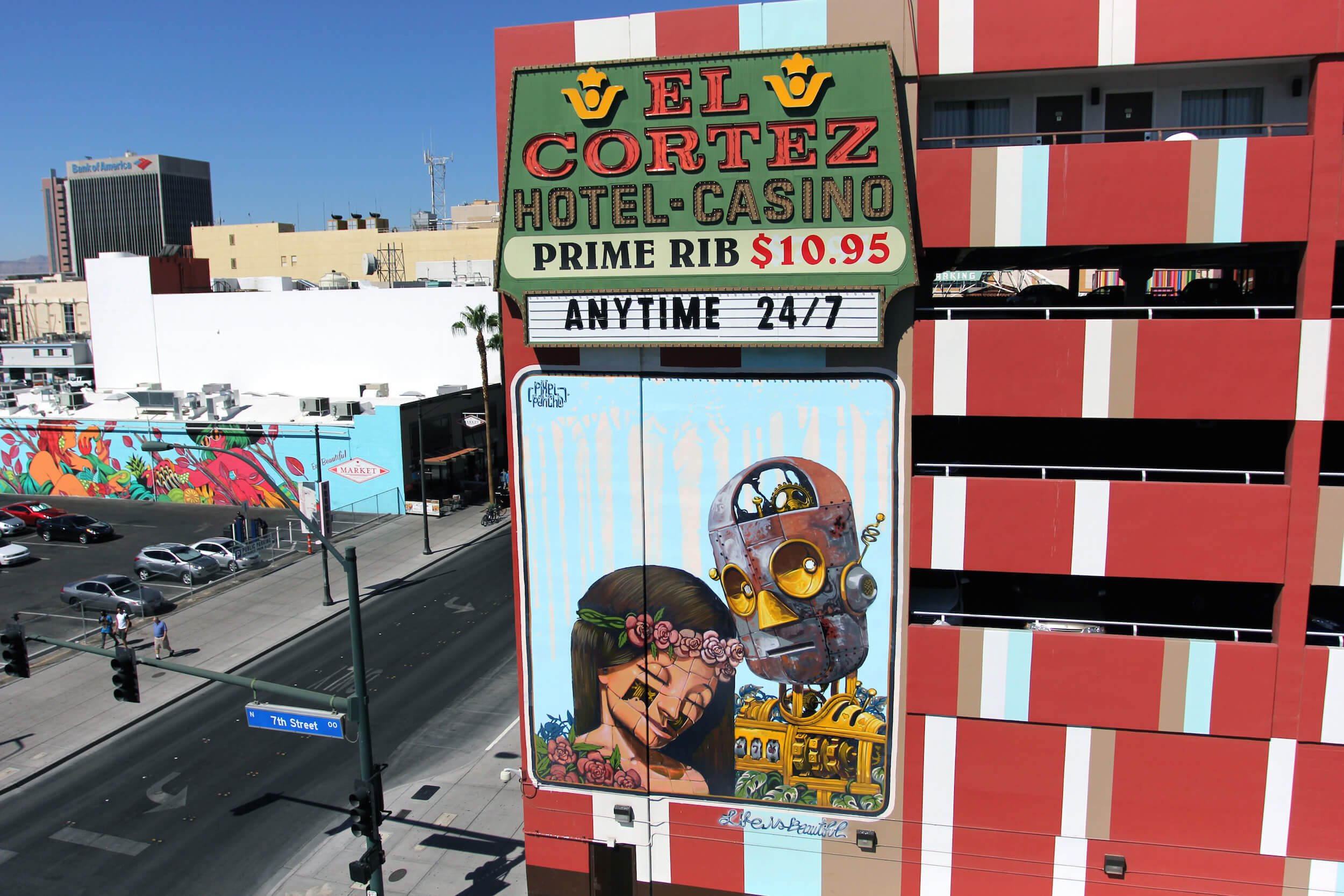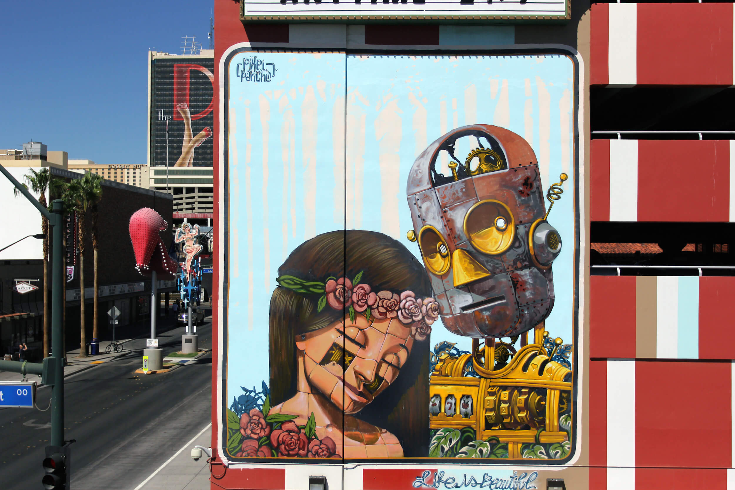 Pixel Pancho was Downtown with his signature robot-inspired imagery on the side of the casino.