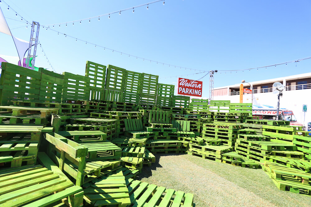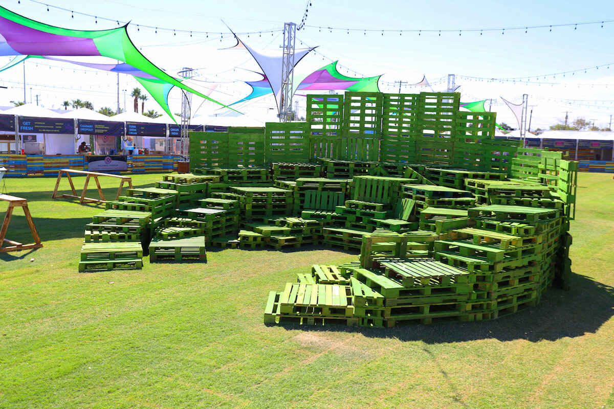 French architect Stephane Malka created some rad seating elements around the foot-print for the attendees to relax, made completely out of wooden pallets!