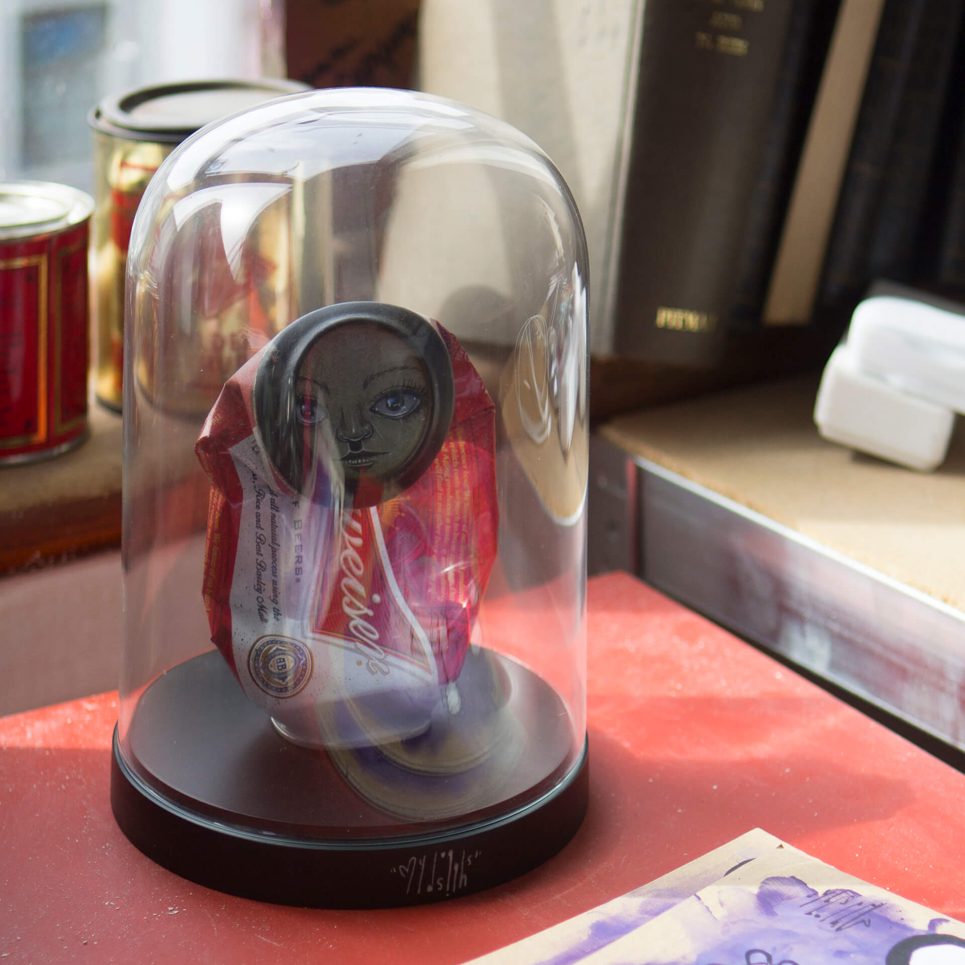 “I took it back home and added a simple face. Eyes averted (like so many homeless people I see abandoned on the street) it stood hunched and looked so lost”.