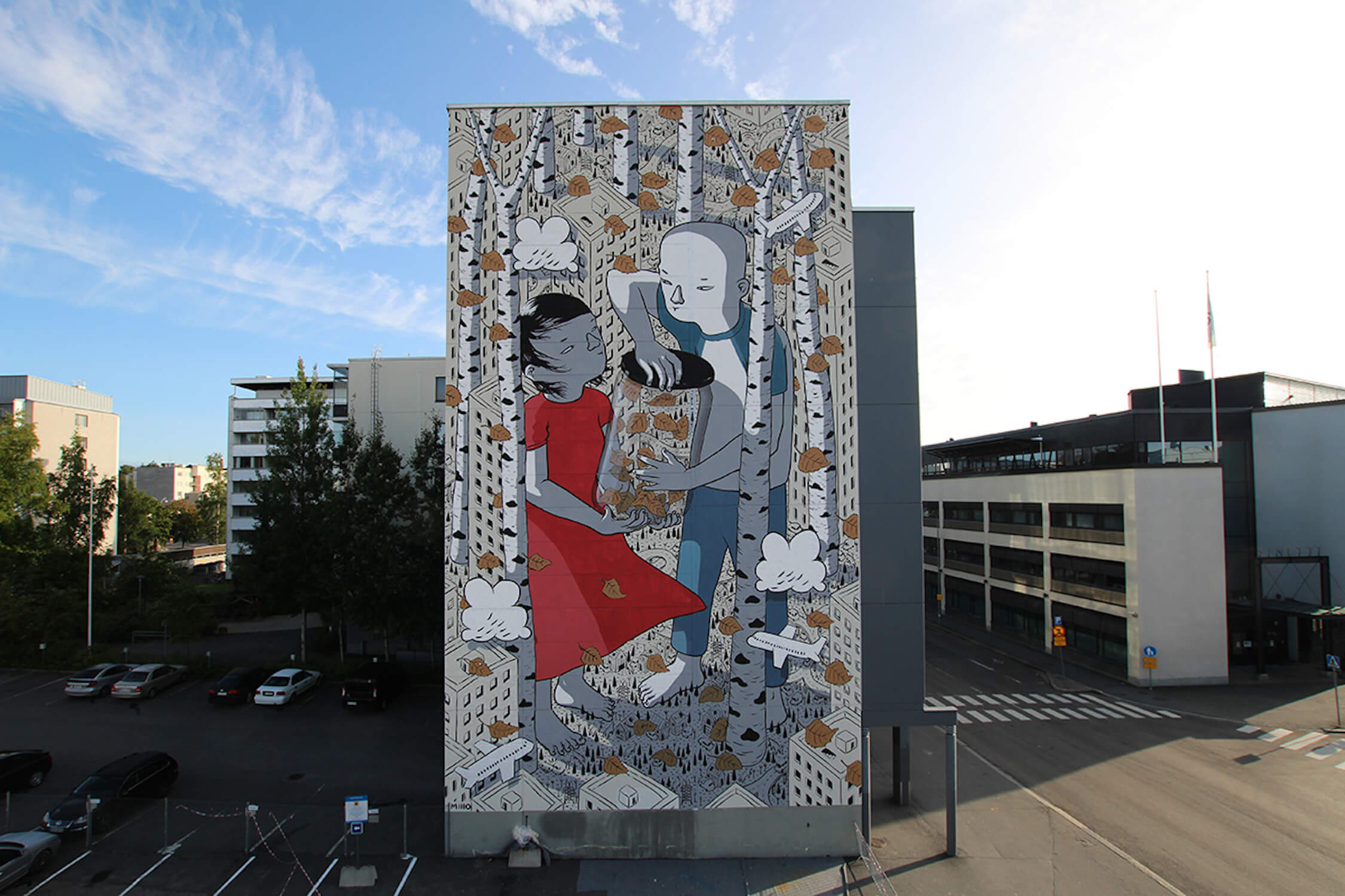 “I painted this wall in Jyväskäla a small city 350 km North from Helsinki for Upea art festival. The city is sourrounded by an amazing nature, lakes and forests everywhere. I feel very inspired and I wanted to underline the relationship between small things and ourselves and how something that seems nothing could be everything.” Millo