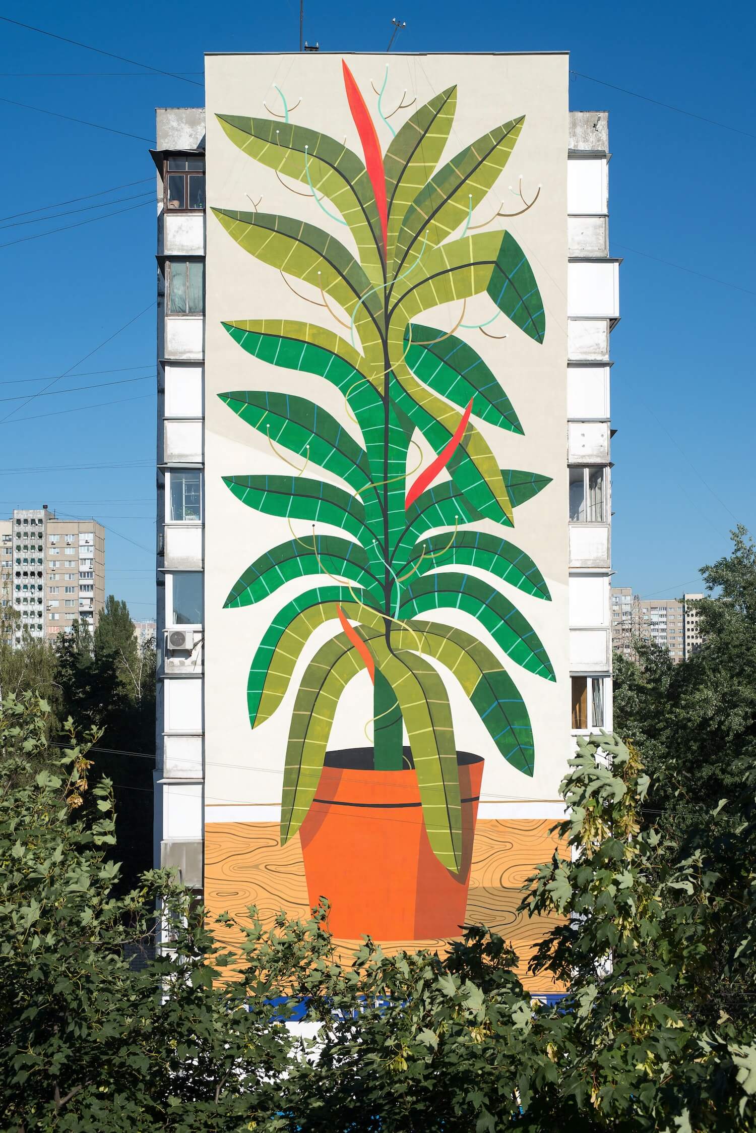 Agostino Iacurci paints a giant plant titled ‘Water Please’.