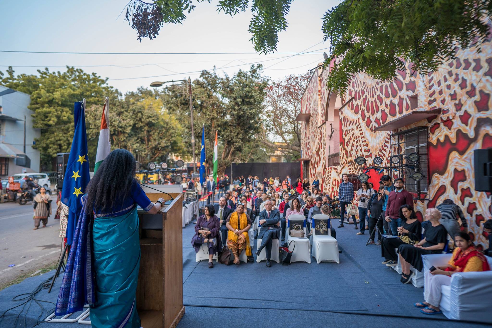The evening was opened by a performance by women Rajasthani folk singers from the Kathputli Colony followed by a very engaging panel discussion on How can public art contribute to women’s empowerment, with cultural curator Myna Mukherjee and contemporary artist Sonia Khurana, moderated by St+art co-founder Giulia Ambrogi.