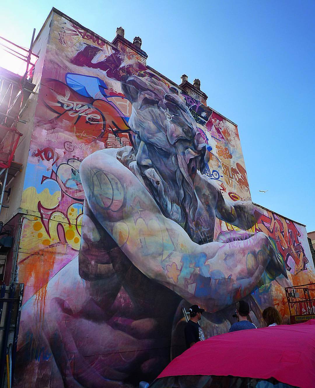 Their freshly painted mural depicts the greek god of sky and thunder .. yes you’ve guess it right … Zeus!