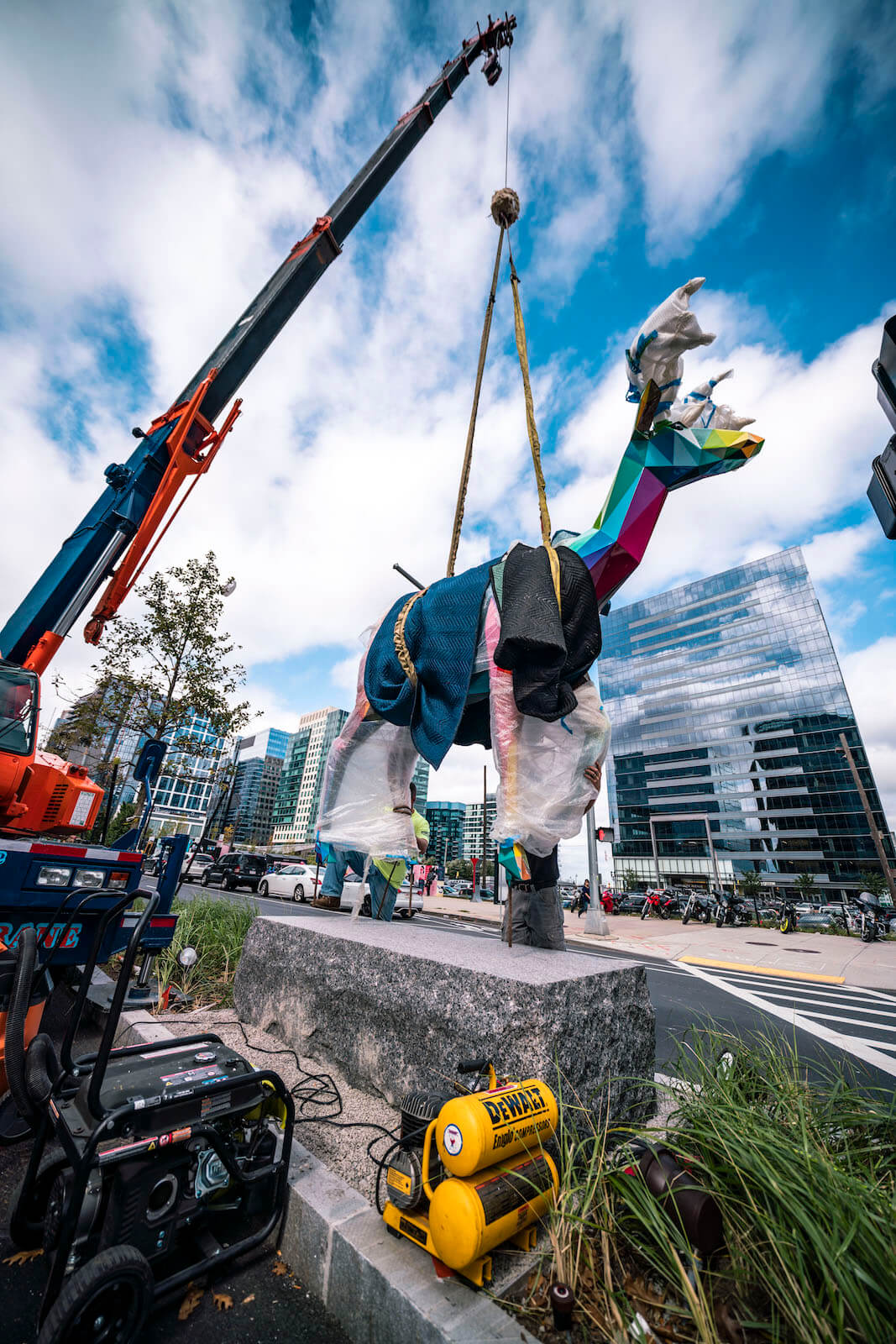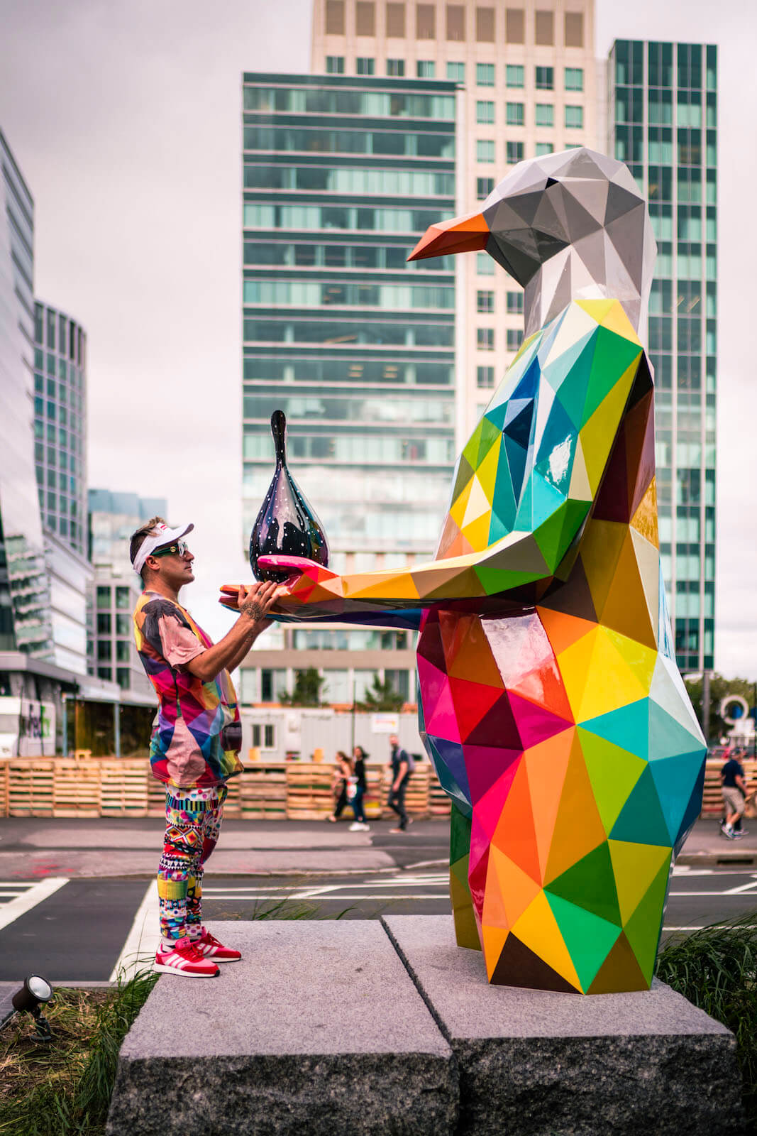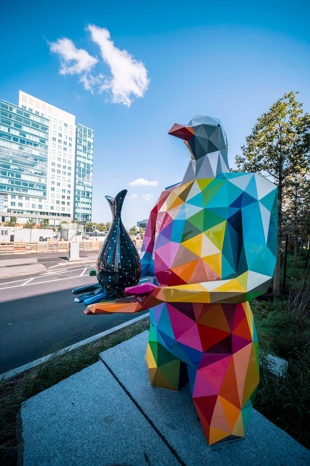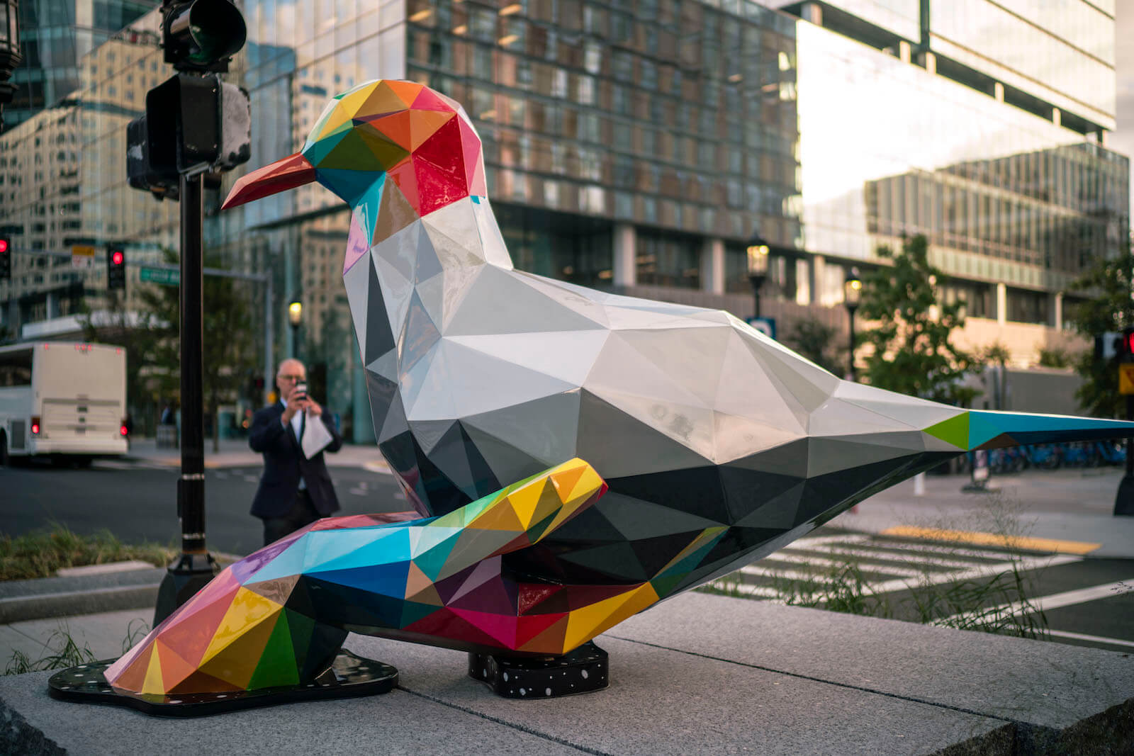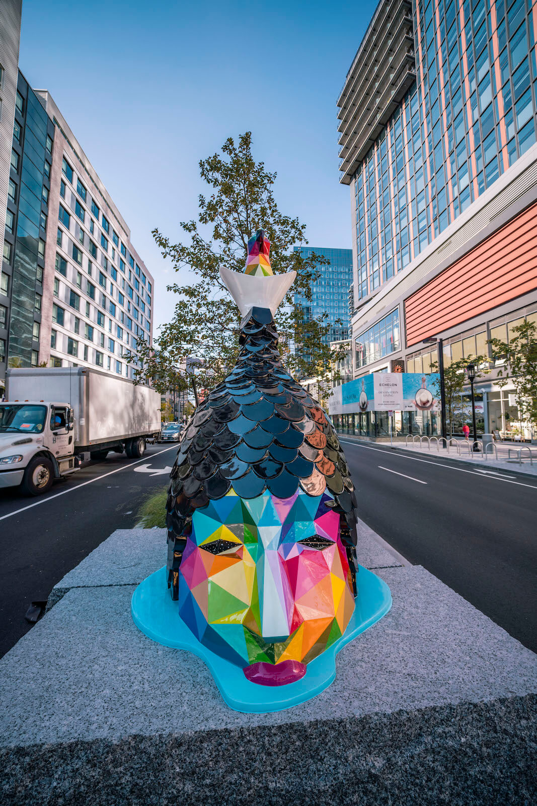 Okuda’s vibrant kaleidoscope sculptures transforms Boston Seaport, 2018