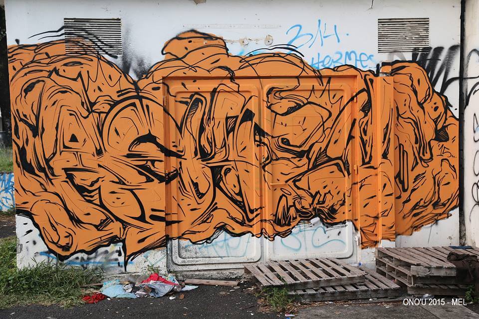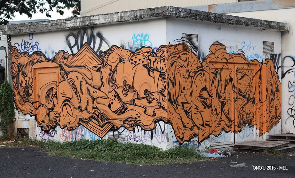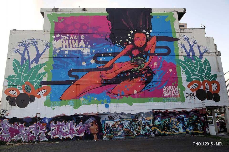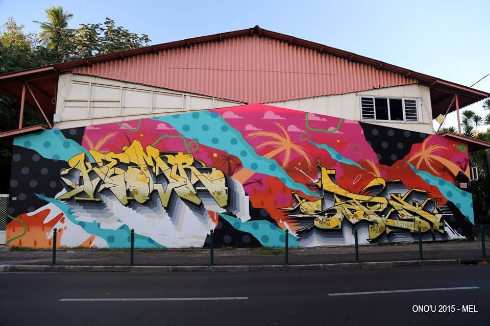The name “ONO’U” is a neologism inspired by Tahitian two words: “ONO”(action to connect two things) and “U”(colours). The name of this festival could therefore translate “colour match” in Tahiti through graffiti art.