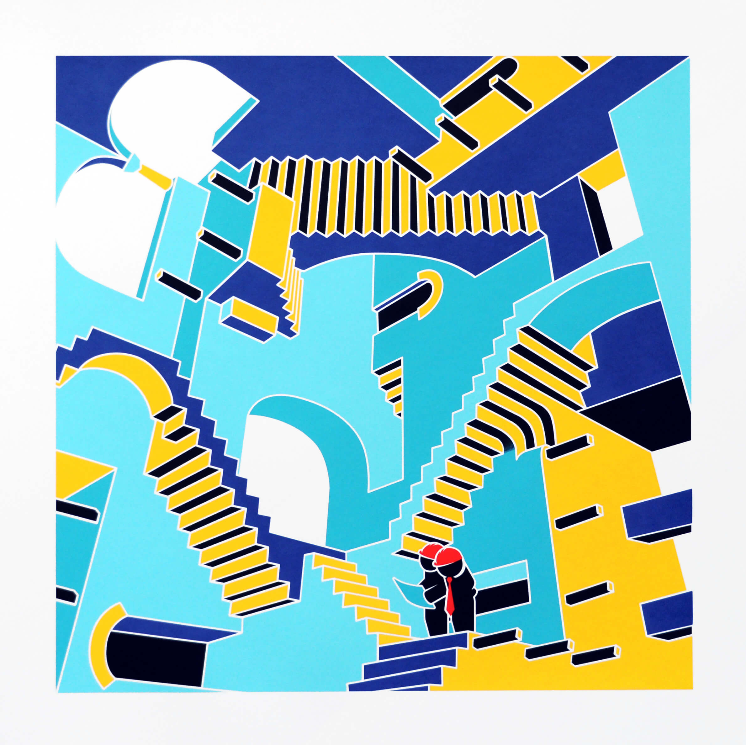 Pahnl revisits his most recognisable artwork ‘Relativity’, a work dating back to December 1953, that depicts a world in which the normal laws of gravity do not apply! And to make it their own, street art duo Pahnl have added their own little humorous twist to this classic masterpiece.