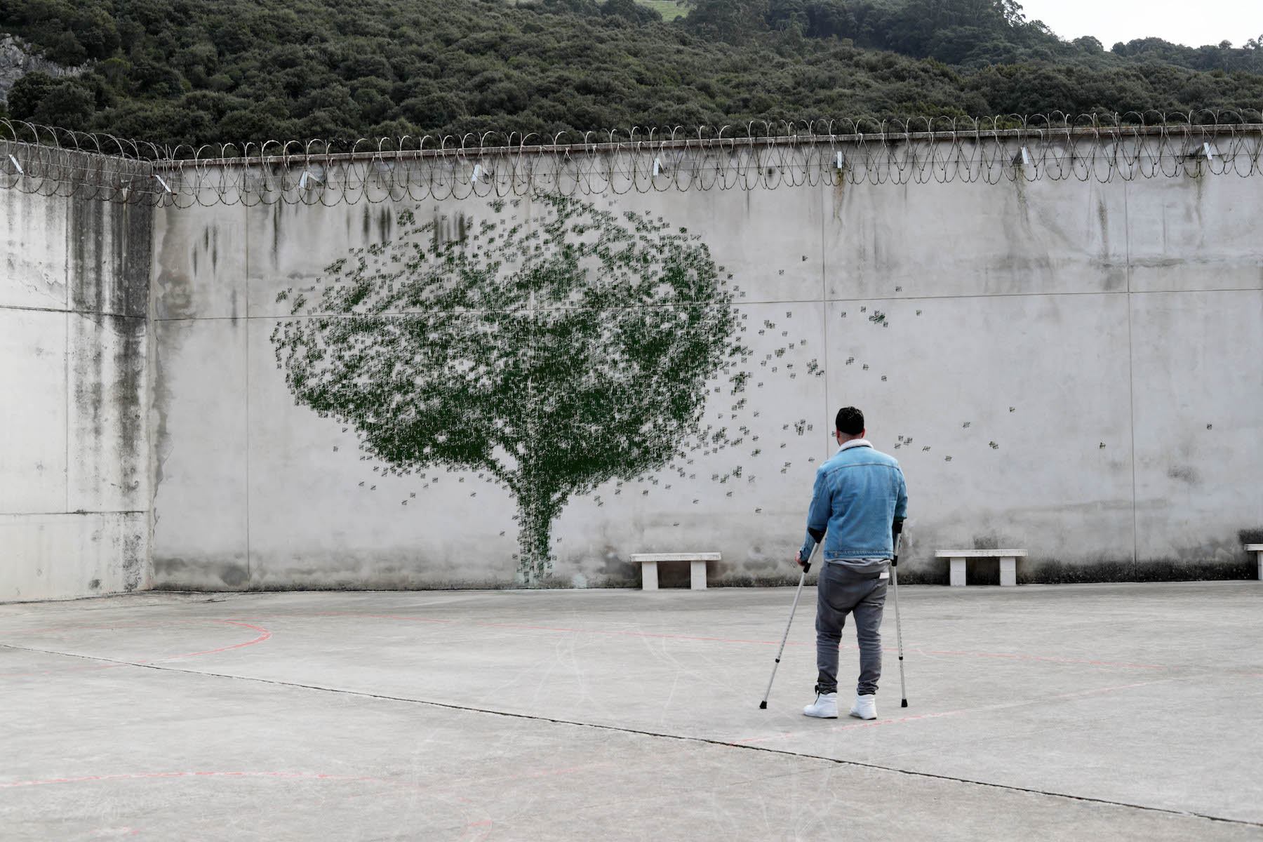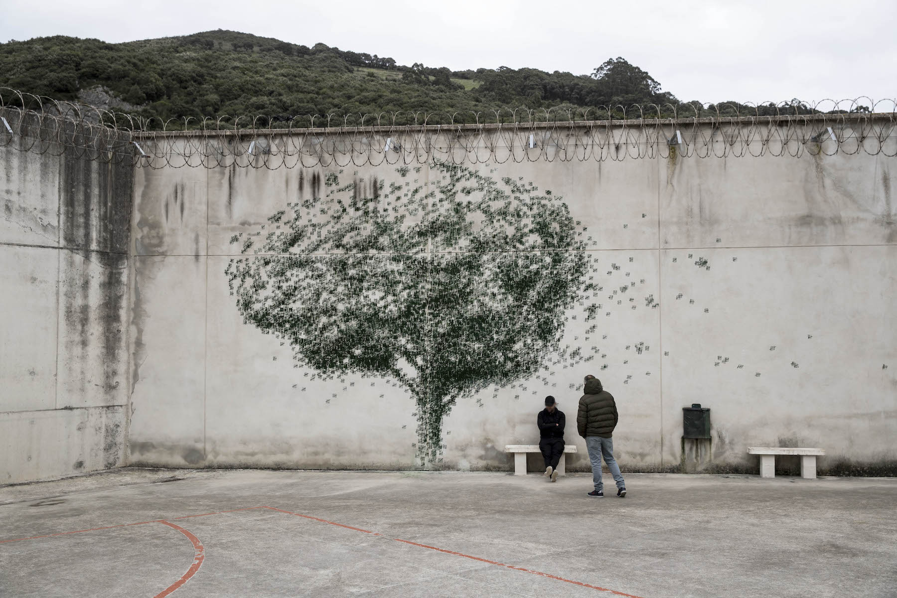 This mural was titled “The Shape of Days” and invites the green trees of the National Park into the prison.
